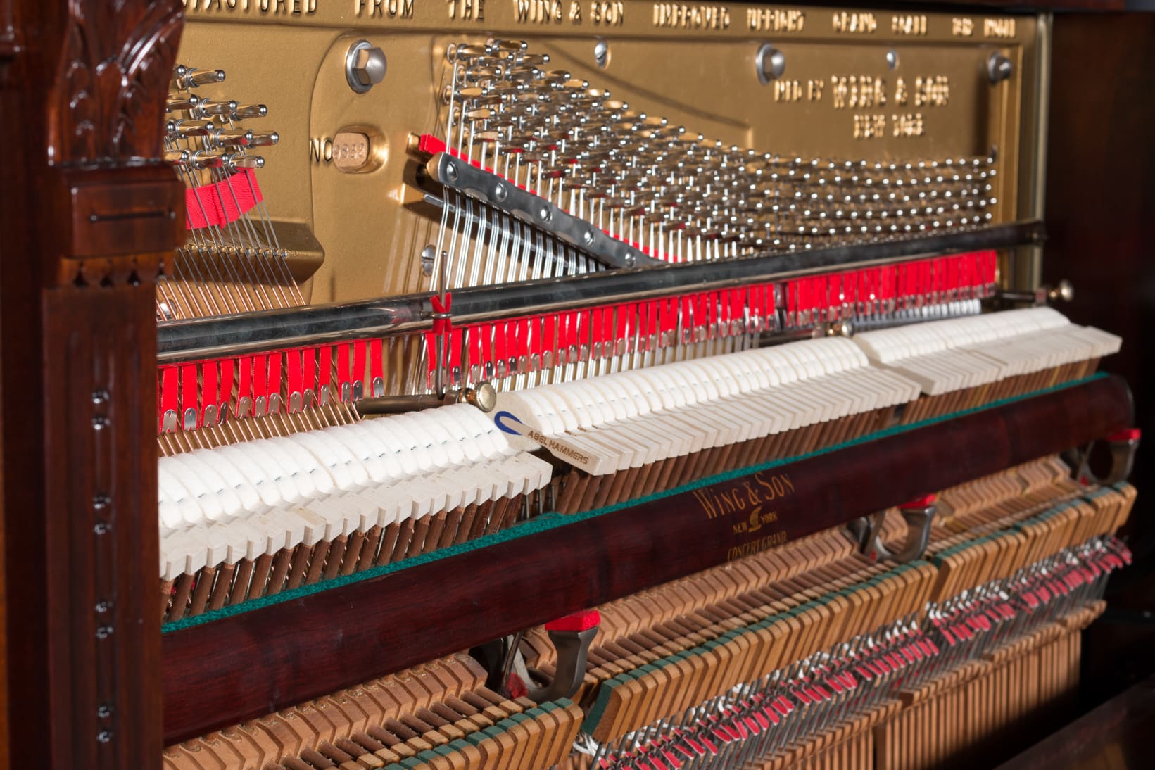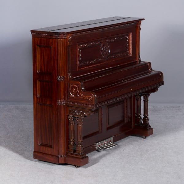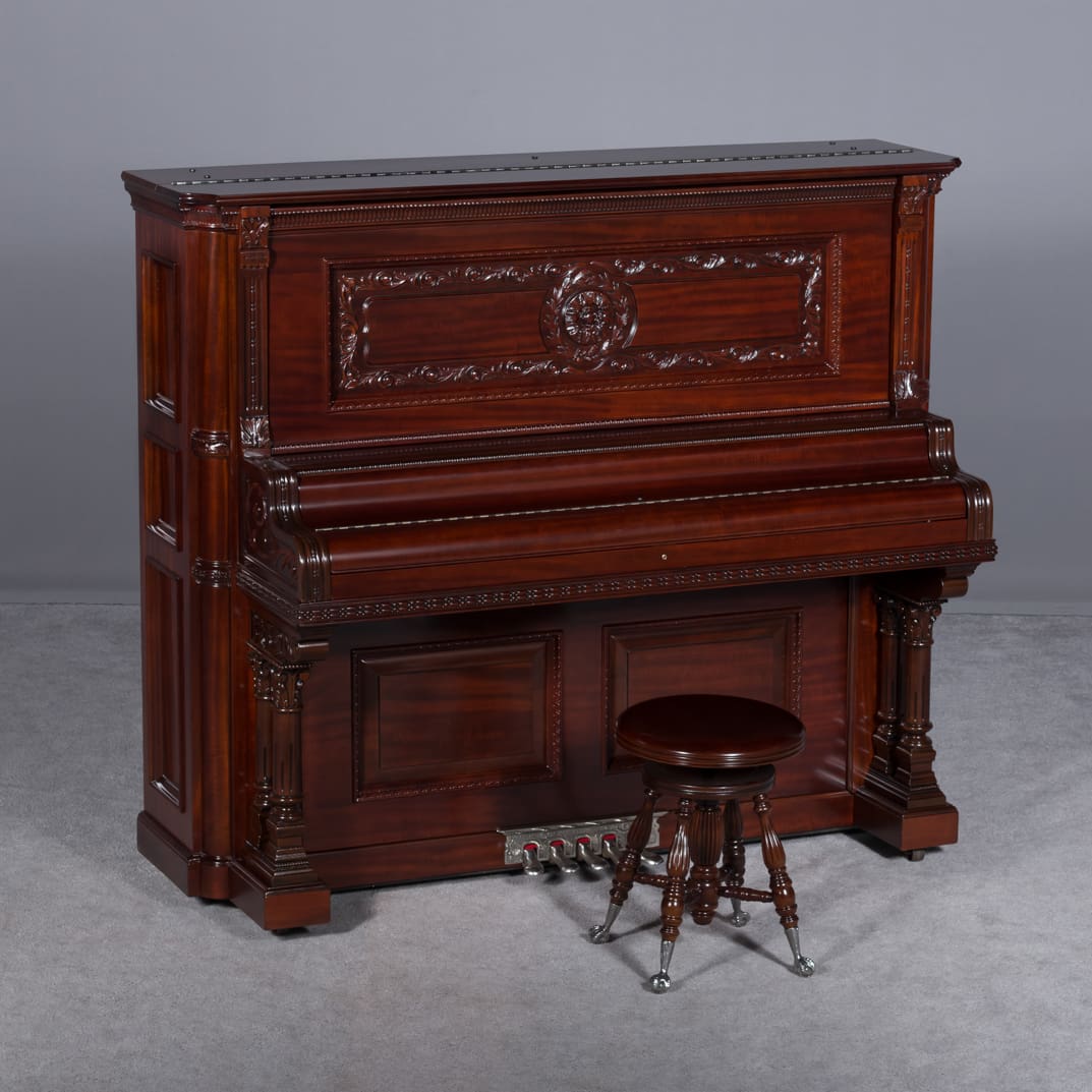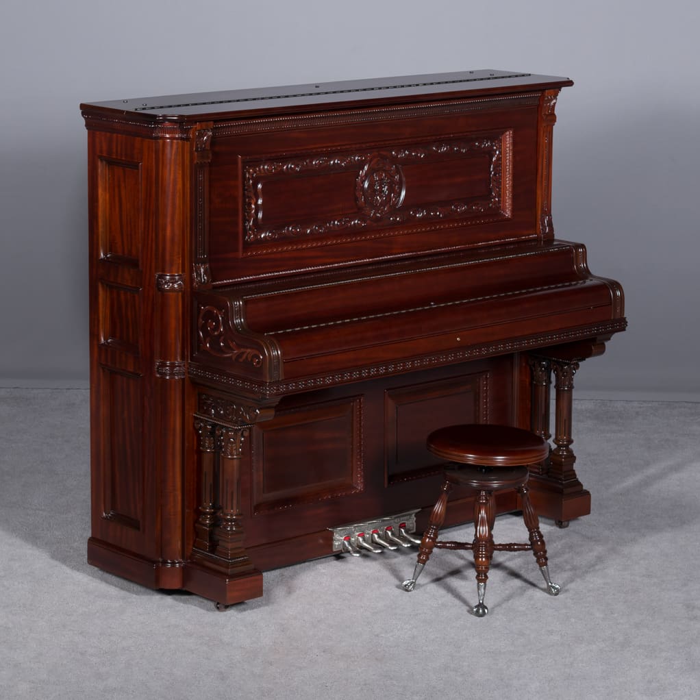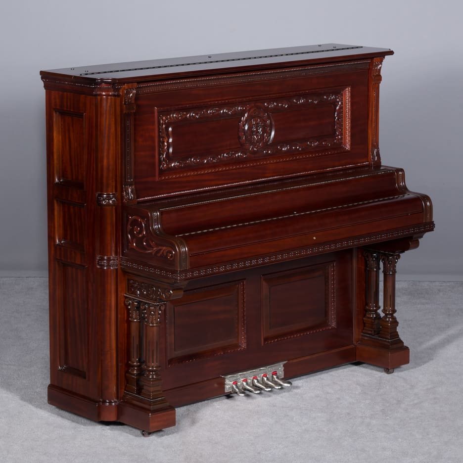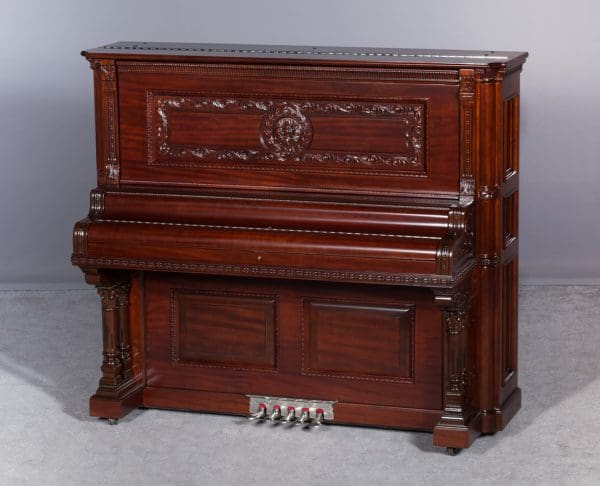 The Wing & Son Piano Company had a reputation for building only high quality pianos and sold them exclusively from lavish mail order catalogs. They were most popular for their 5-pedal “Orchestral Attachments” which mimicked harp, zither & mandolin