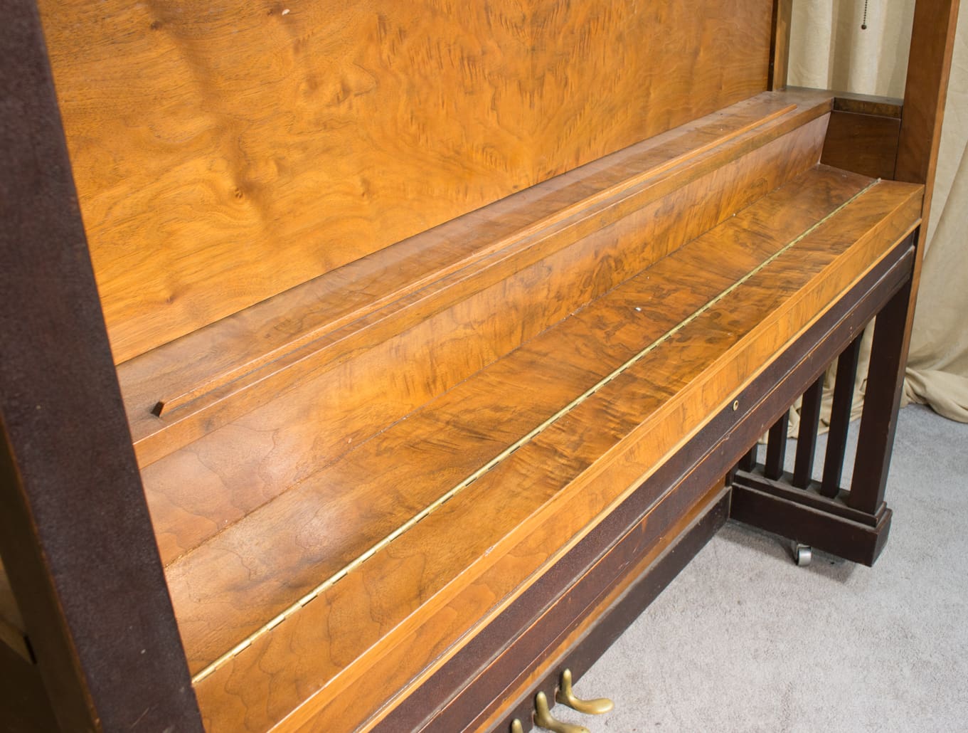 DEPOSITS: The restoration of this instrument has not been completed. A 30% deposit is required on instruments pending restoration. This deposit holds the instrument and keeps it from being offered to other clients, and it also makes that piano’s restoration a priority. Once we complete the restoration, we invite the client to visit our shop to see and hear the piano. If the client is unable to visit our shop, we will send professional photos and videos of the piano for review. The client then has the option of paying the balance and purchasing the piano, transferring their balance to another piano in our shop, or getting a full refund for their deposit. The client is never at risk.