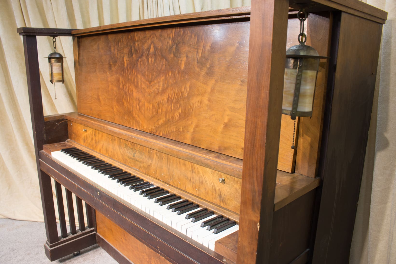 Note: As founder of The Antique Piano Shop, I have personally collected Mission / Arts & Crafts style pianos for over 25 years. I have a great passion for anything Mission / Arts & Crafts, including Craftsman homes, furniture, and accessories. If you are a true Arts & Crafts enthusiast, you will appreciate how impossible it is to find true Arts & Crafts / Mission style pianos in today’s market. Nearly three decades of collecting and preserving these “impossible to find” instruments has allowed me the opportunity to present the largest collection of true Mission / Arts & Crafts style instruments anywhere in the world.