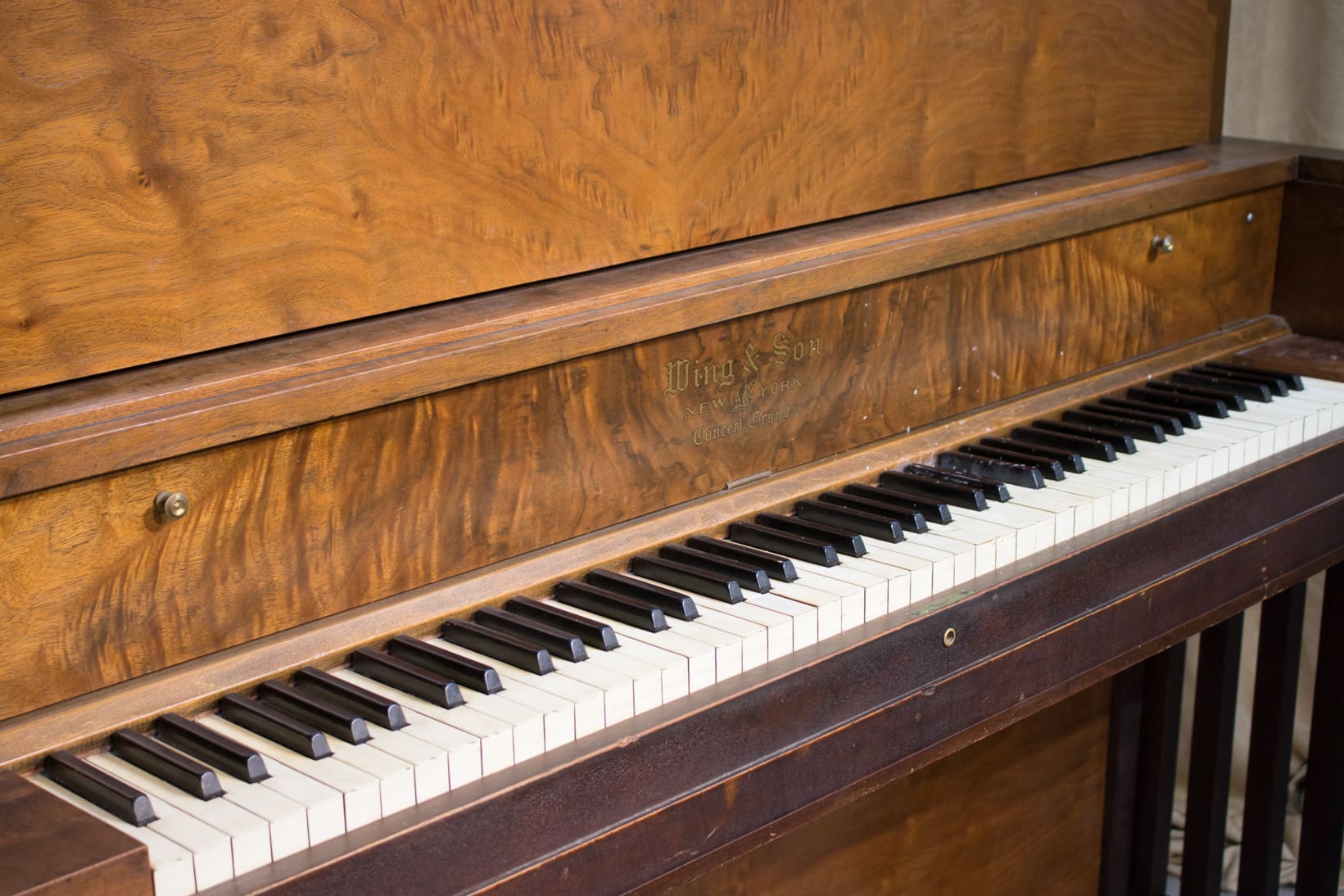 This piano is being completely restored, inside and out, with a historical perspective in mind. This instrument is a full-size upright grand with substantial tone quality. If desired, this piano can be equipped with the Pianomation player system, and can play by itself by streaming music live from any smart device. Thousands of song titles are available.