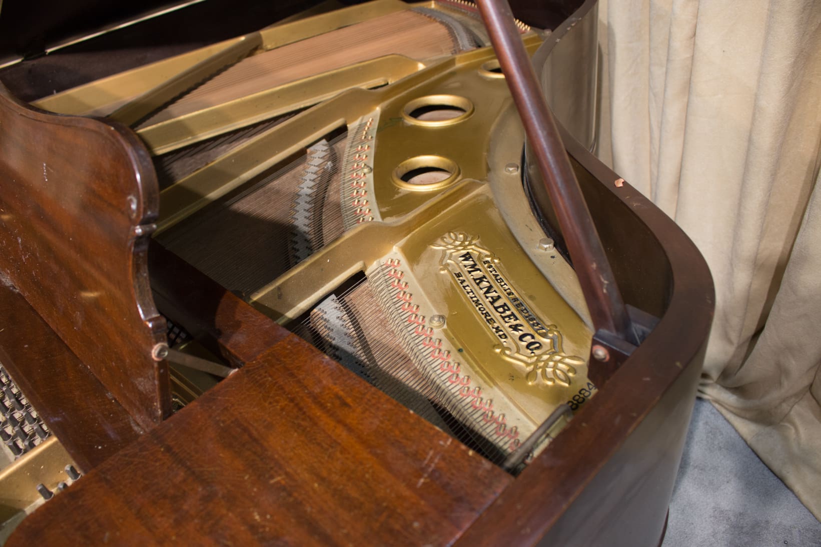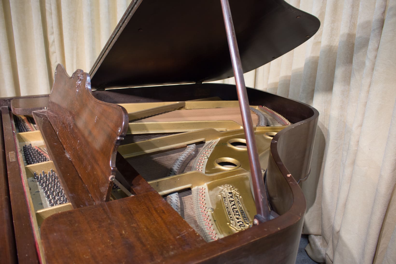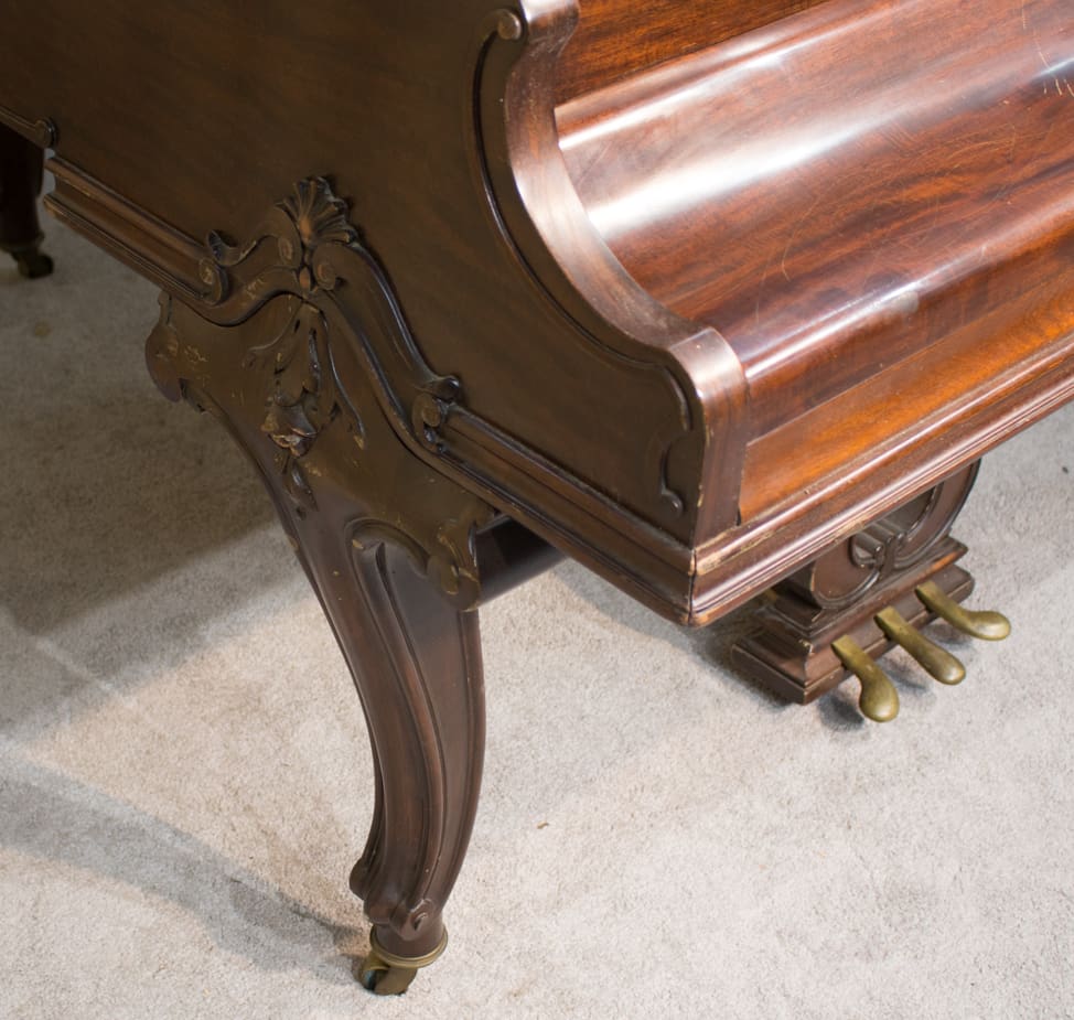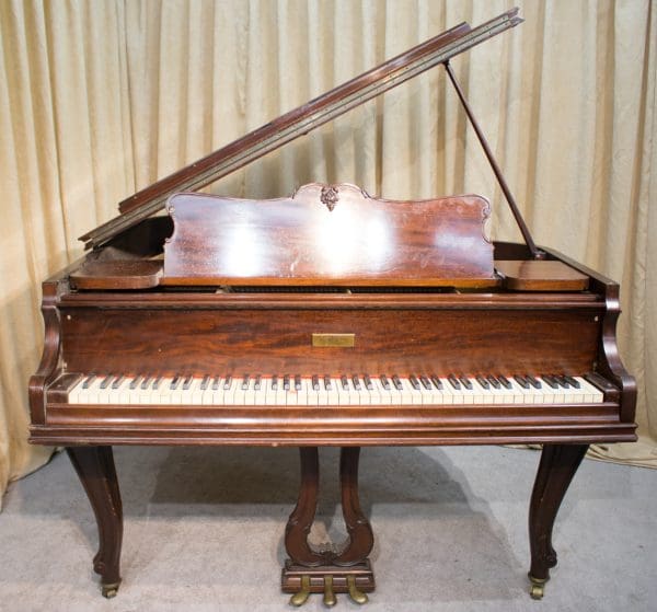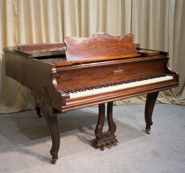 This beautiful piano was built by Wm. Knabe & Co. during the “Golden Age” of the American piano industry. Knabe was the official piano of the Metropolitan Opera for many years, and their pianos were famous for having rich, deep tones that were desirable for vocal accompaniment.