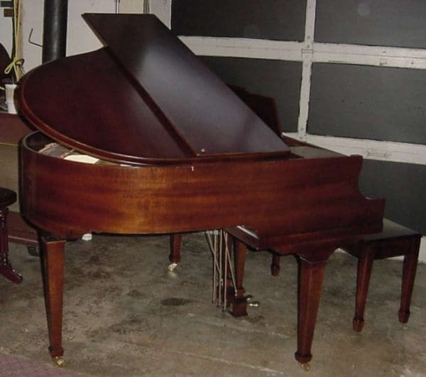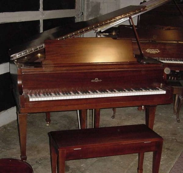 This lovely baby grand piano was built by the famous Rudolph Wurlitzer Piano Company during the “Golden Age” of American piano building. It is a petite 4’8″ long, and is made of beautiful mahogany wood.