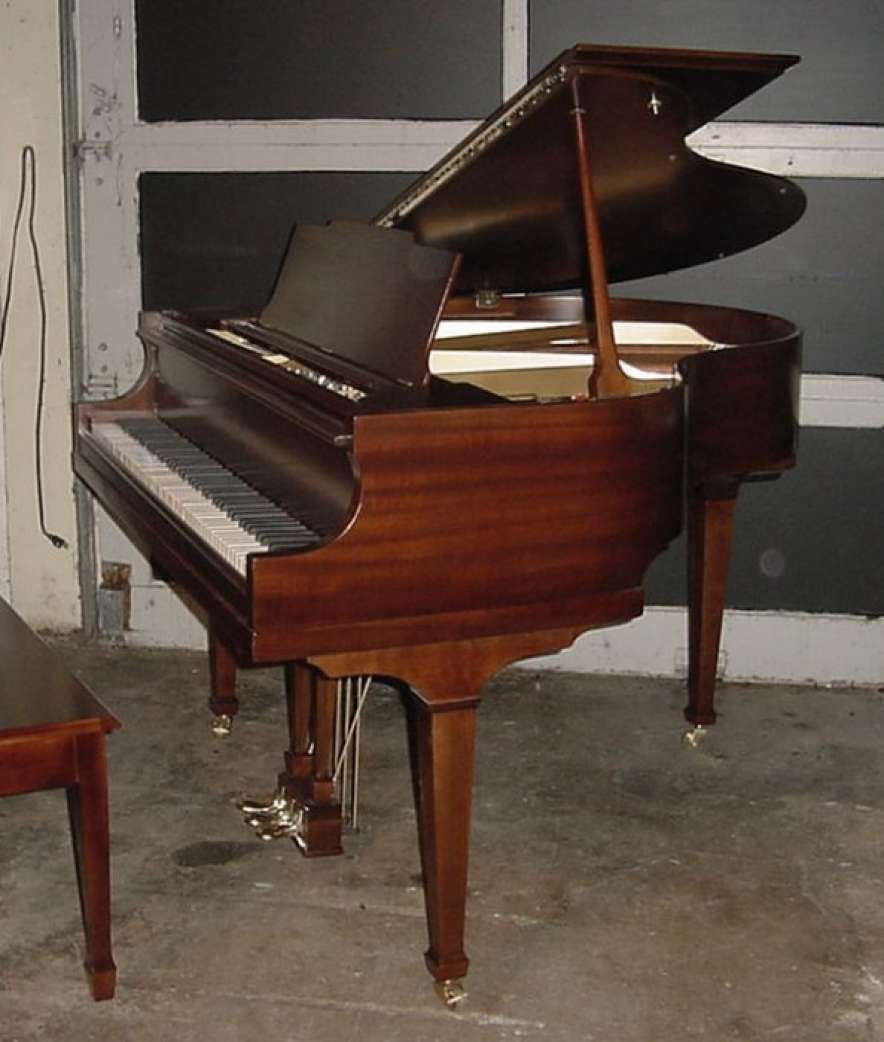 Today, modern piano manufacturers tend to put their better quality, materials, and workmanship in their larger, more expensive pianos. Modern manufacturers count on people buying small pianos for aesthetics rather than for function, so they are able to make small new pianos of lesser quality that sell. You can buy a new Asian imported baby grand piano for well under $10,000, but you get what you pay for. You get particle board cabinets, plastic action parts, acrylic veneer, and green unseasoned wood. We see these cheap new pianos suffering severe deterioration after only a few years due to the lack of quality materials and workmanship. A vintage baby grand piano like this one is made of top quality REAL wood, no plastic or particle board. Wood is what resonates to make a pianos tone quality how do you think plastic and particle board sounds?