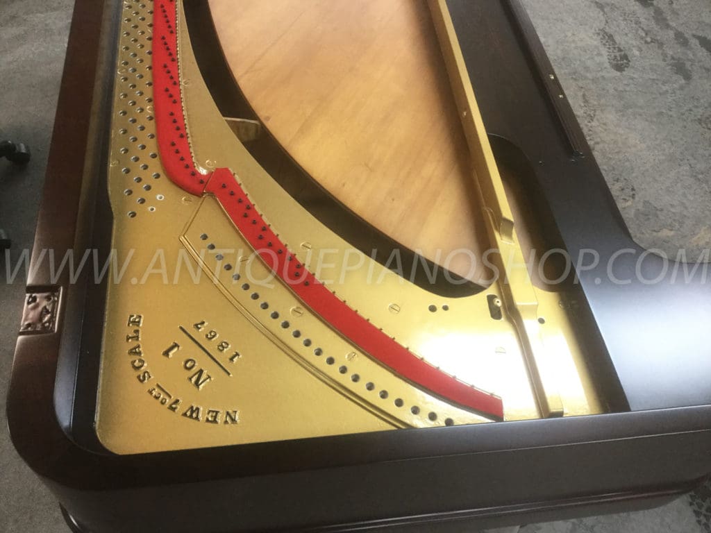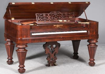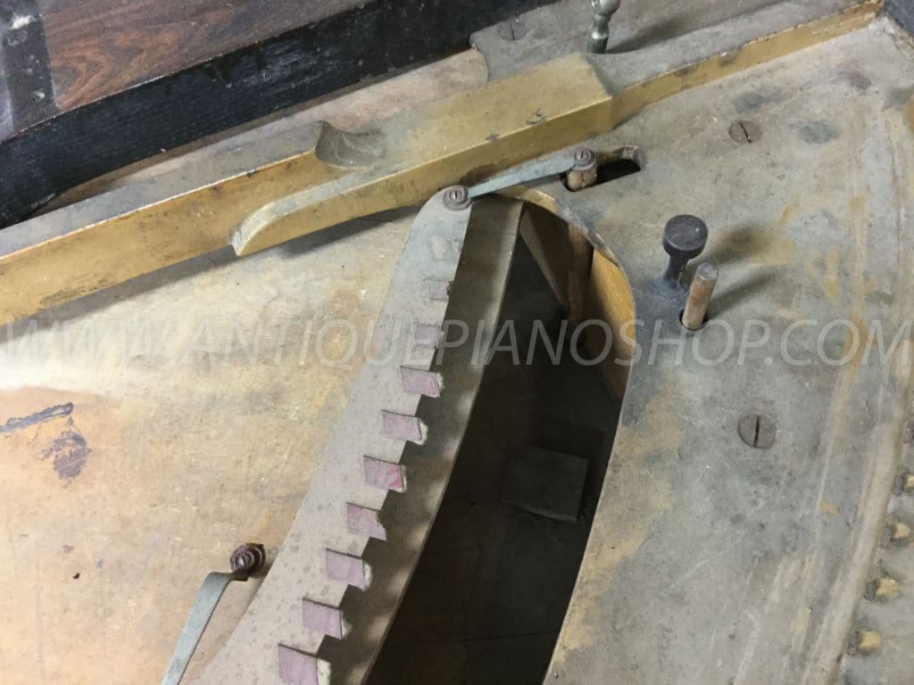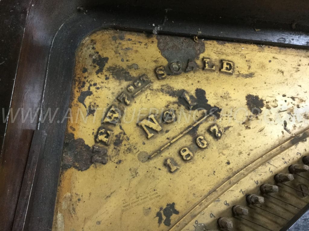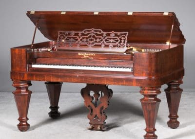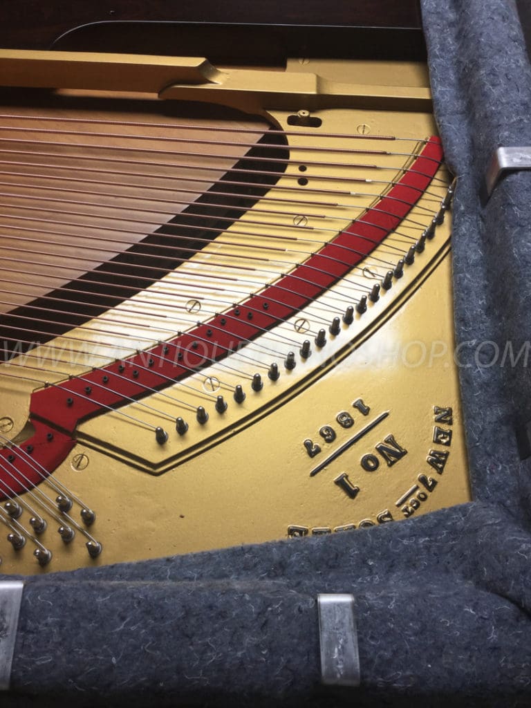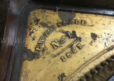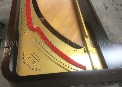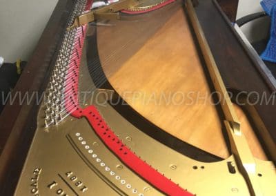 A professional, historically accurate restoration makes the piano look and play like it did when it was built over 150 years ago! The depth and luster of the Brazilian Rosewood finish is absolutely beautiful. The soft, harp-like tone quality can be heard in the video below.