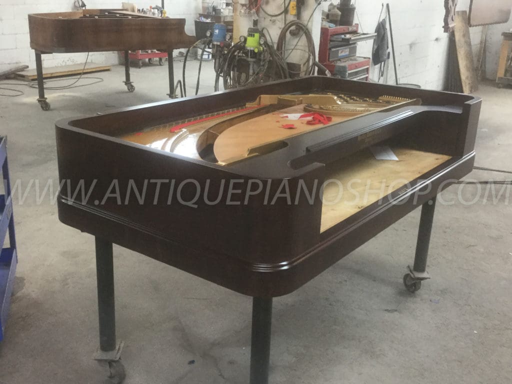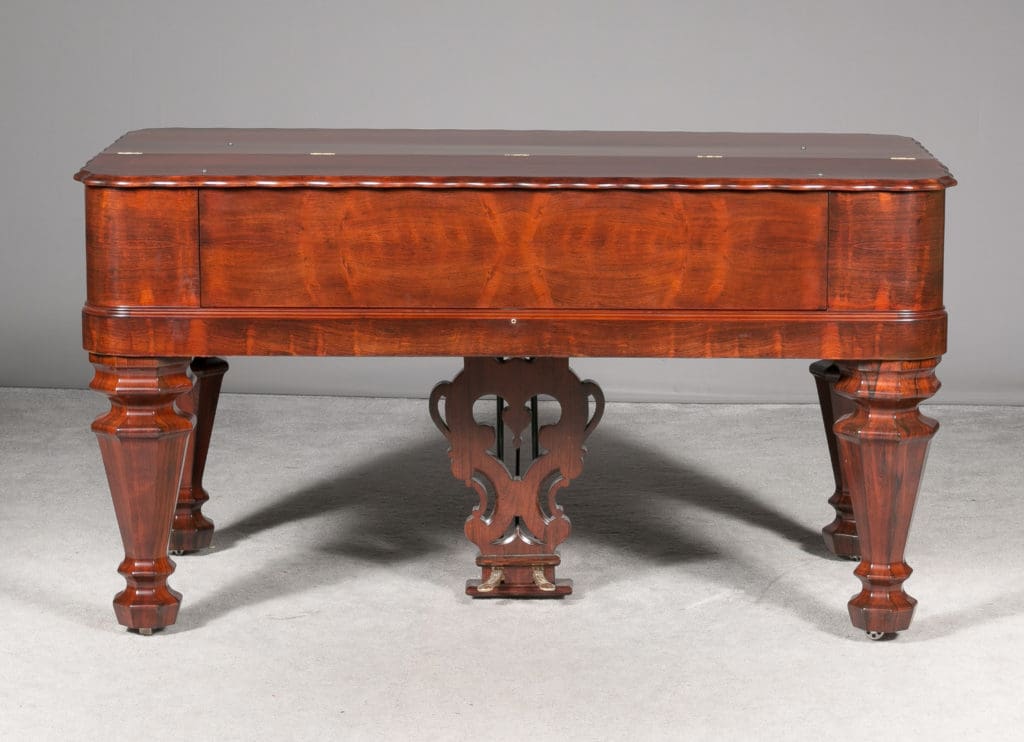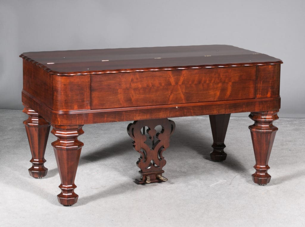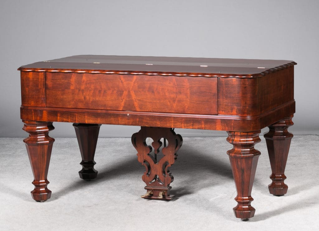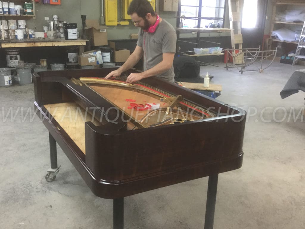 It is important to understand that the interior mechanisms of square pianos are very different from baby grand and upright pianos. Parts are not readily available for them through common piano supply companies, and many less experienced piano tuners may discourage their restoration and preservation. Here at The Antique Piano Shop, we are set up to manufacture all of the obscure parts for square grand pianos on a case-by-case basis, giving us the ability to do a complete and historically correct restoration on square pianos like this one.