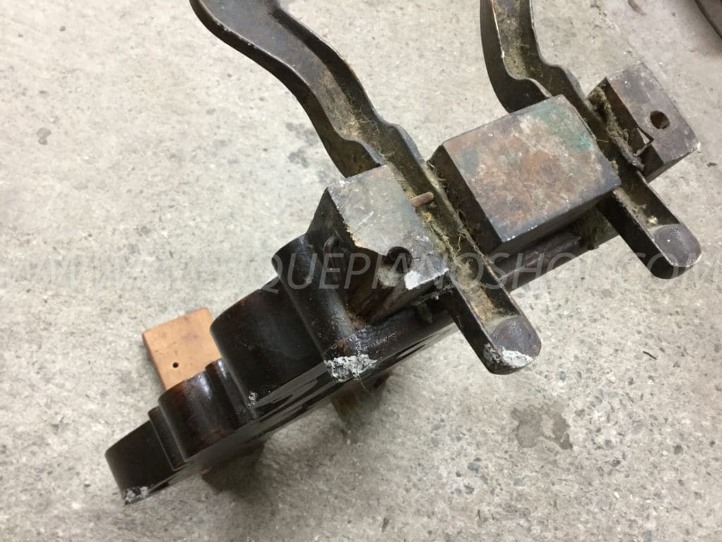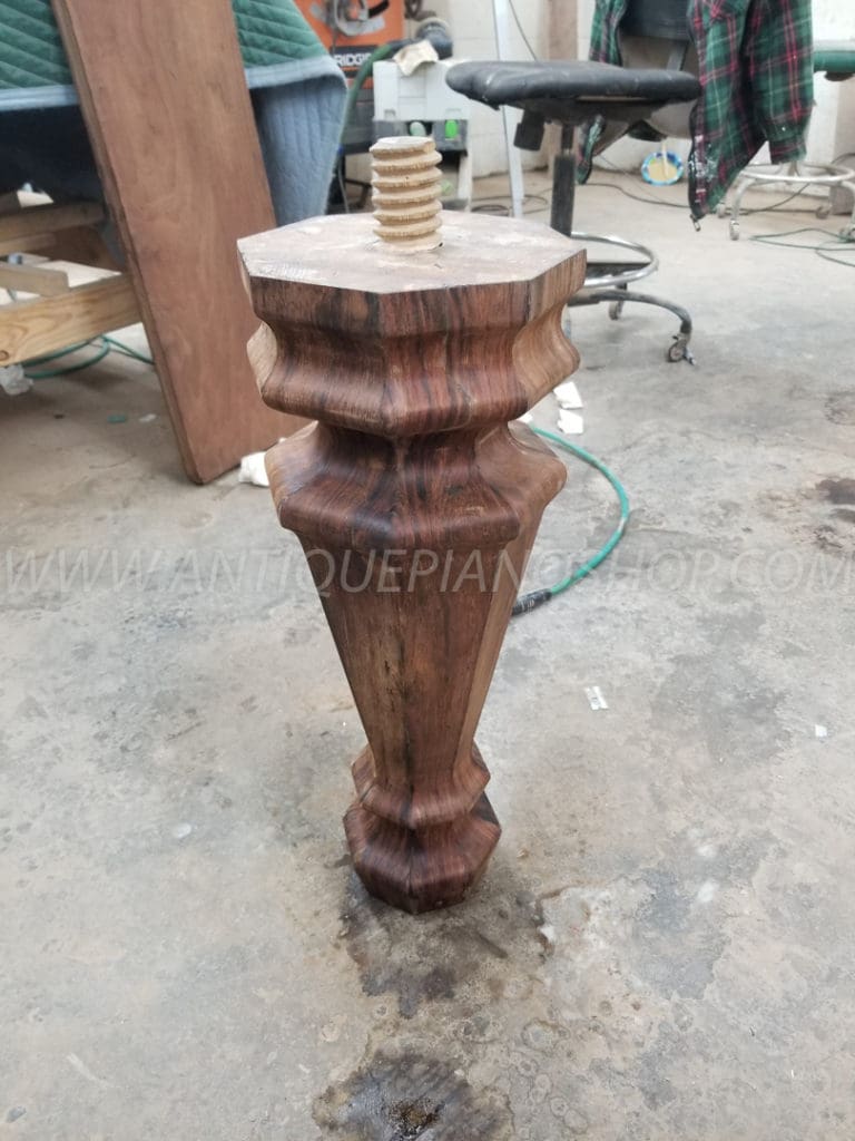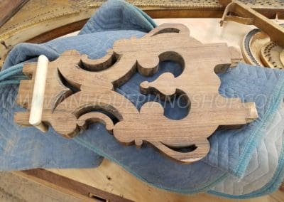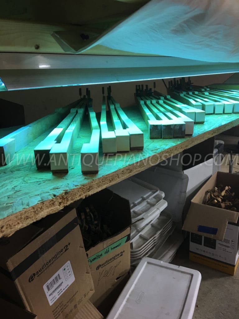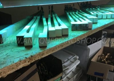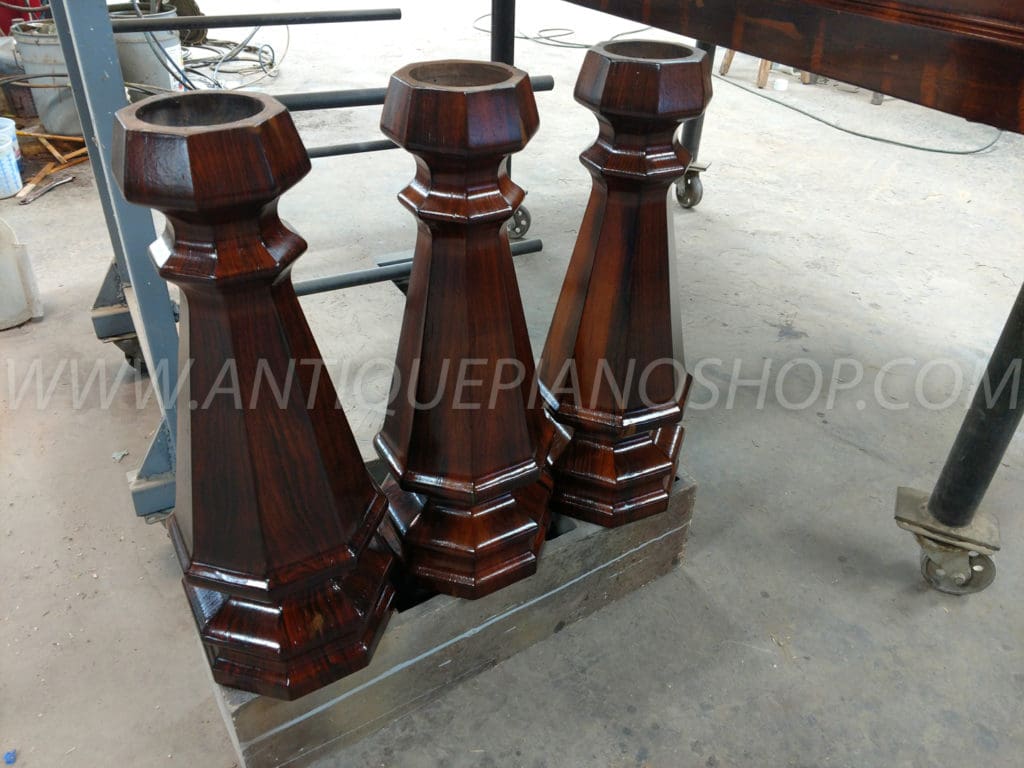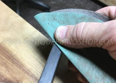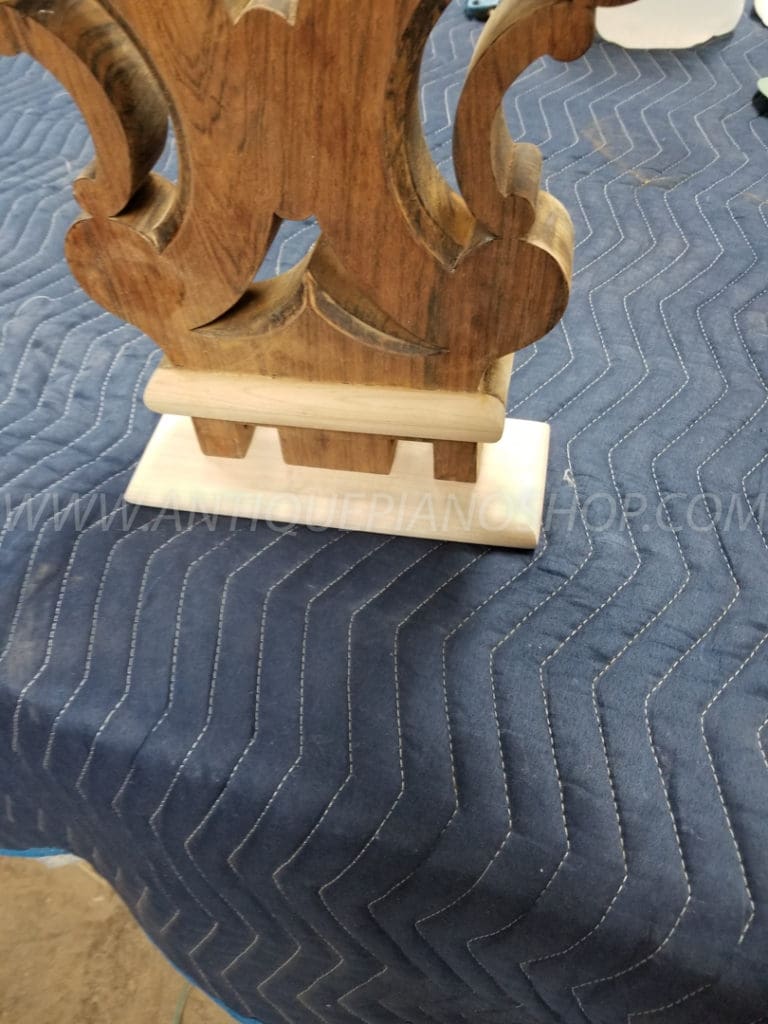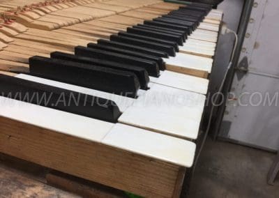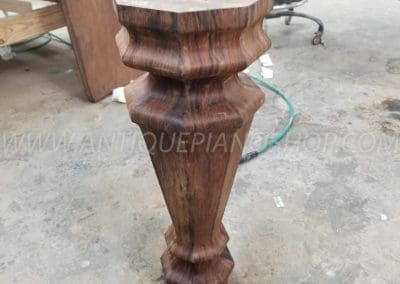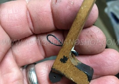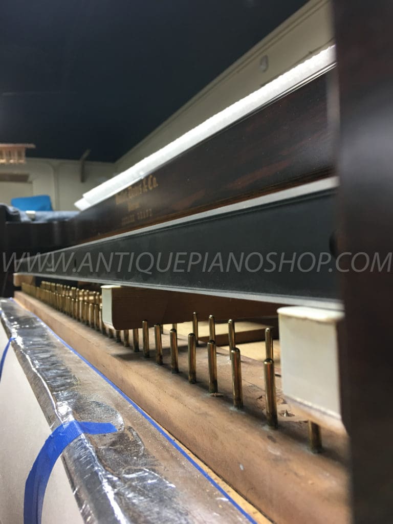 The original ivory and ebony keys are reasonably well-preserved and are restored. The ivory is cleaned and treated with UV light while chips and cracks are repaired. The ebony sharps are re-stained and buffed. The mechanical action of the piano was virtually destroyed by a poor-quality attempt at restoration many years ago where the wrong parts were used in restoration. Because the parts for this instrument are obscure and not readily available, we specialize in making all of our parts “in house” on a case-by-case basis. Our amazing action team was able to duplicate every last part of this delicate piano action both by hand and with the help of a CNC machine. This piano received a new custom-made action including new custom made hammers, butts, shanks and flanges.