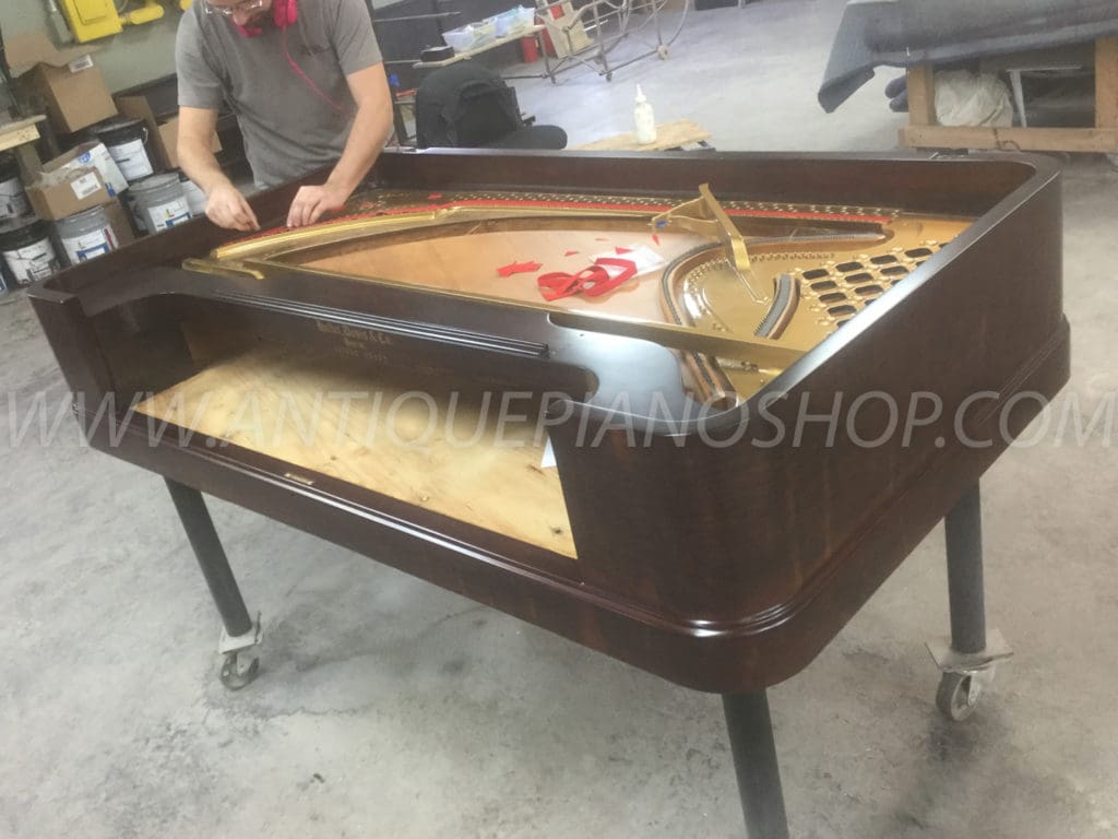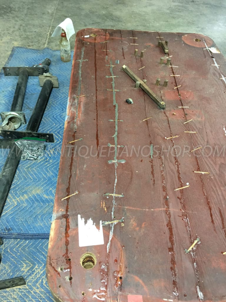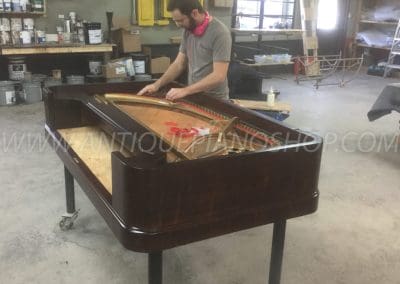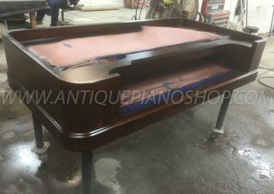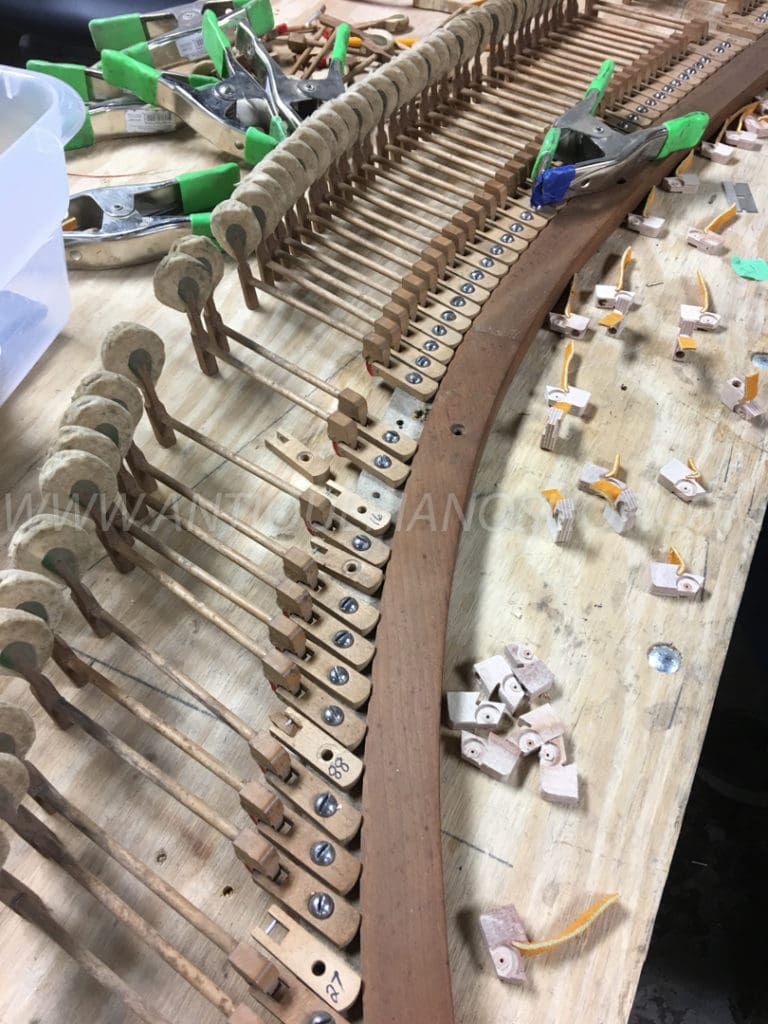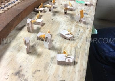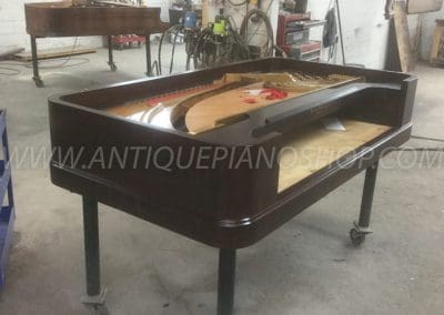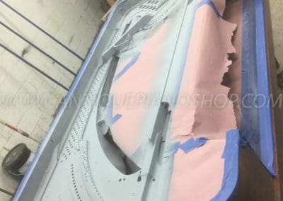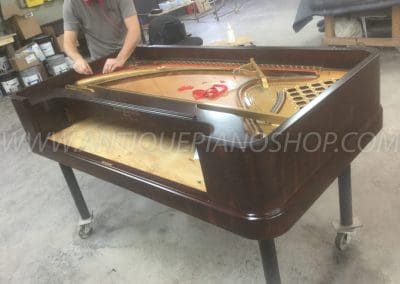 The piano is carefully disassembled and every individual piece is carefully recorded and labeled. All hardware and screws are removed, and the action and keyboard are removed and disassembled. Our crew assesses the instrument to see which parts and pieces will need to be custom made in-house for the instrument.