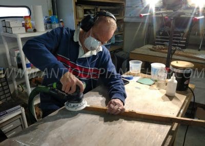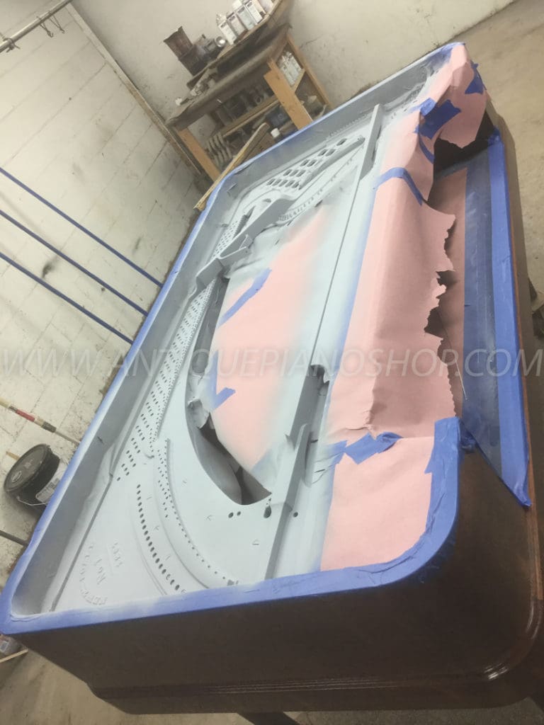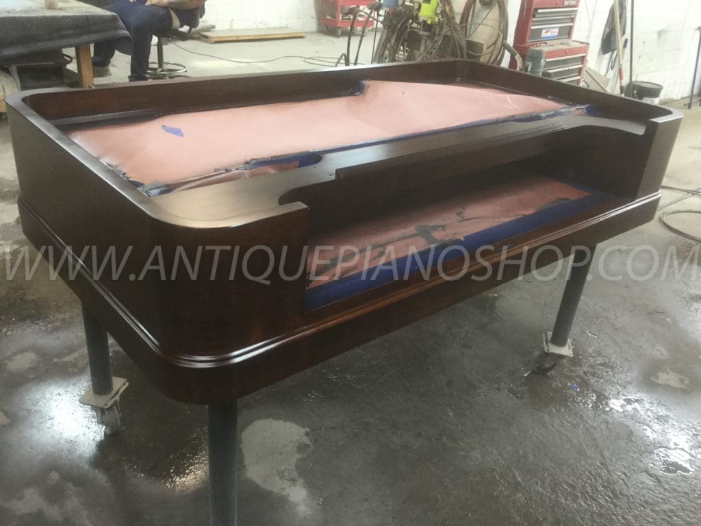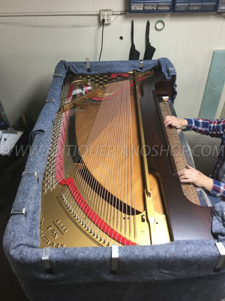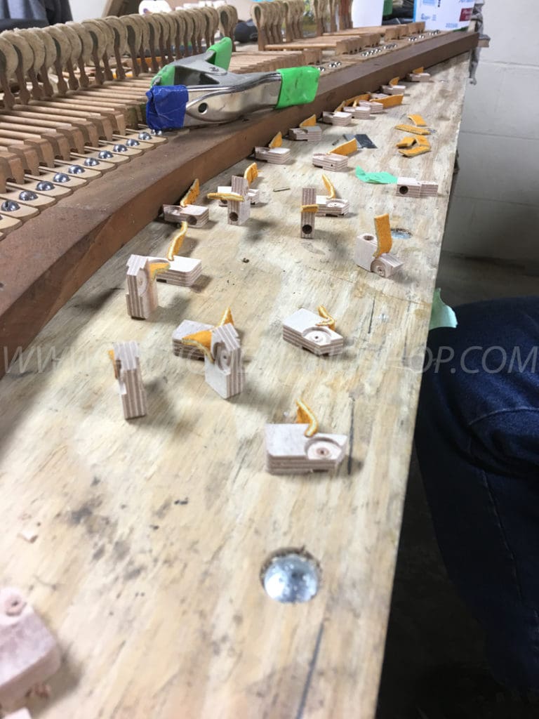 The piano is carefully disassembled and every individual piece is carefully recorded and labeled. All hardware and screws are removed, and the action and keyboard are removed and disassembled. Our crew assesses the instrument to see which parts and pieces will need to be custom made in-house for the instrument.