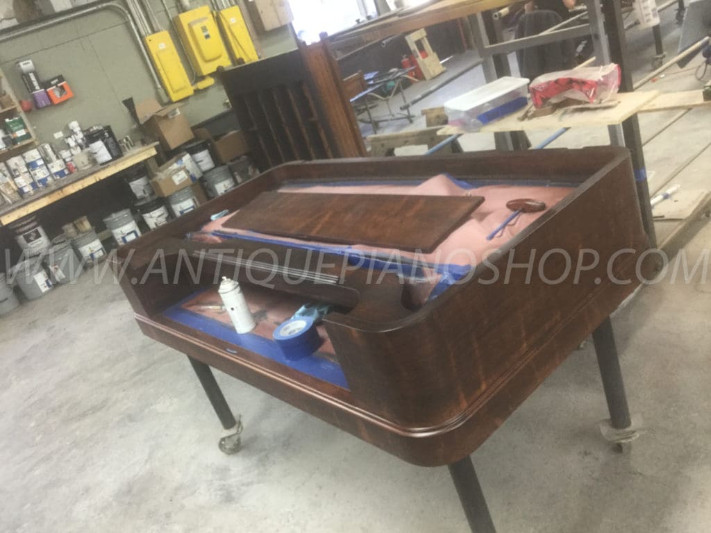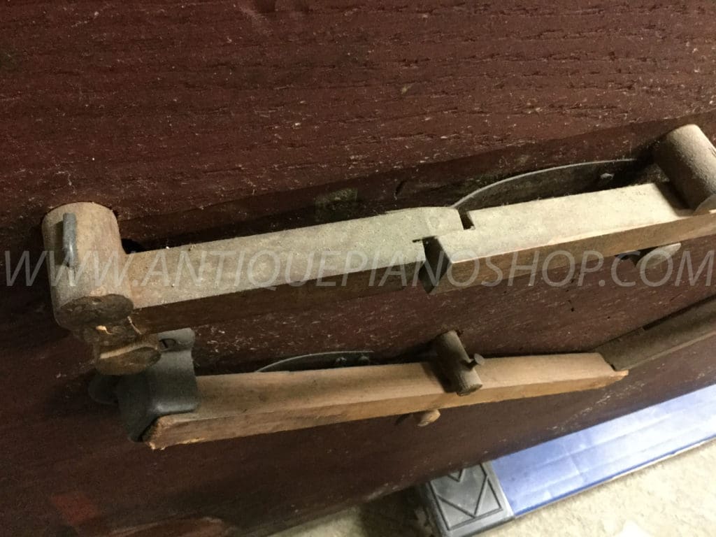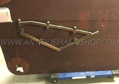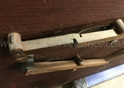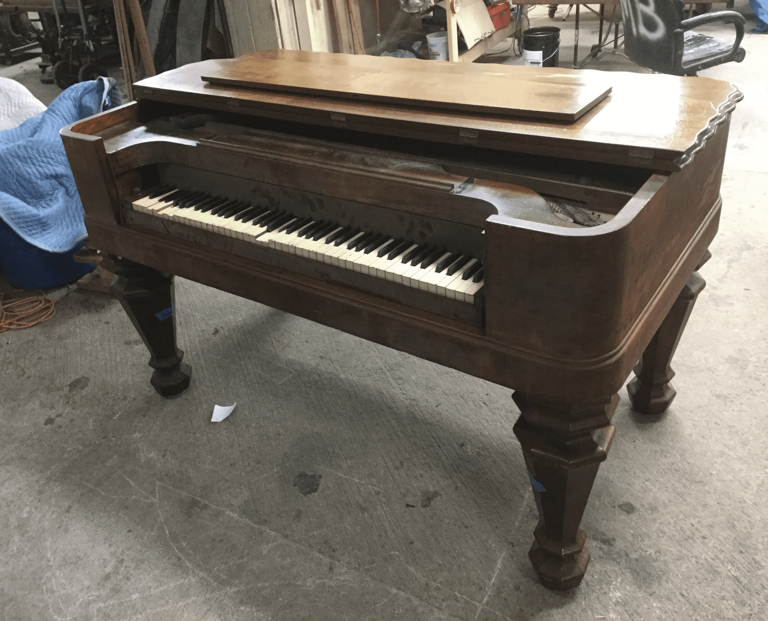 This piano is a family piece that has been handed down through the family for generations. The owner of this piano had it “refurbished” many years ago, but a poor-quality attempt at restoration actually did more harm than good. The piano was poorly refinished which left the cabinet faded, dull and lifeless. Because these action parts are not available for square grand pianos, piano technicians have historically tried to modify conventional grand and upright parts to make them work in square grand pianos – with little success. These poor quality modifications made restoration quite a challenge. We were able to “undo” the previous restoration and restore the piano to perfection with historical accuracy!
