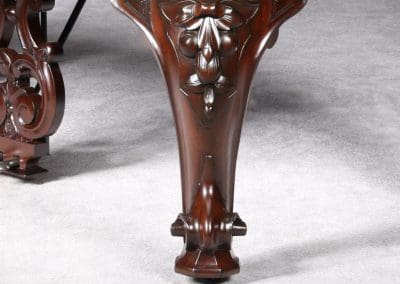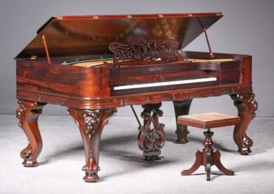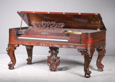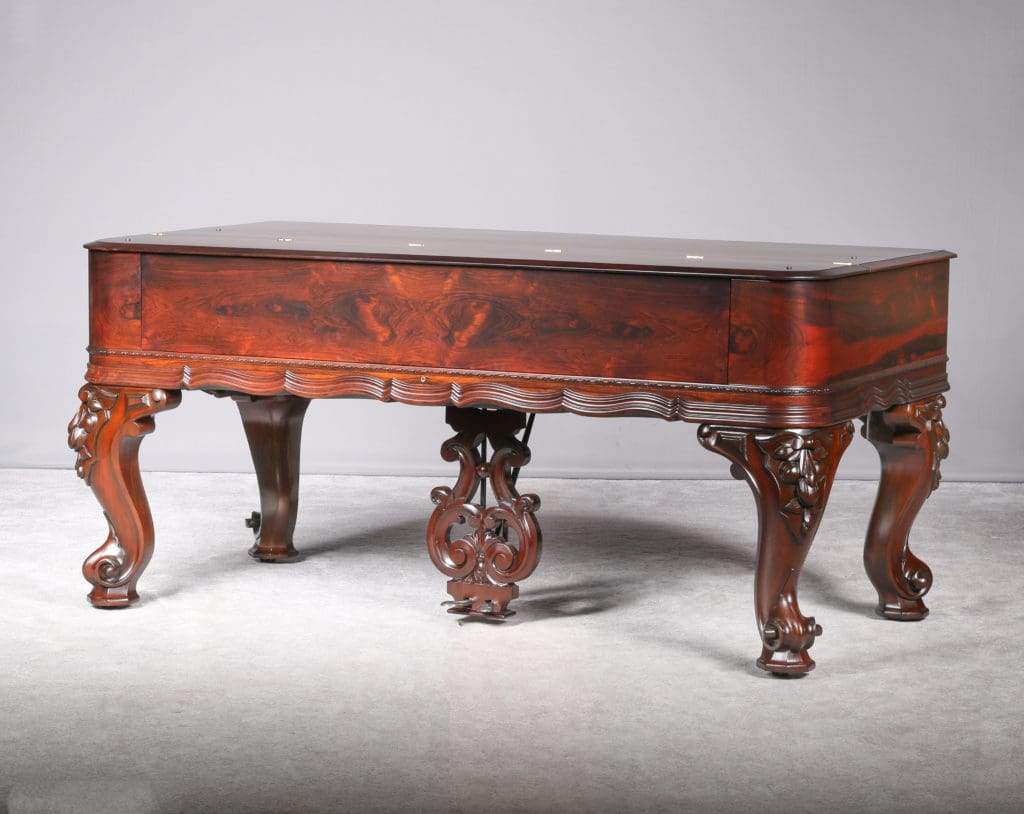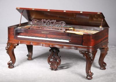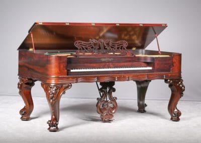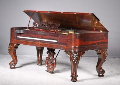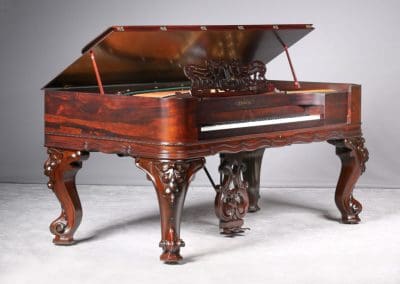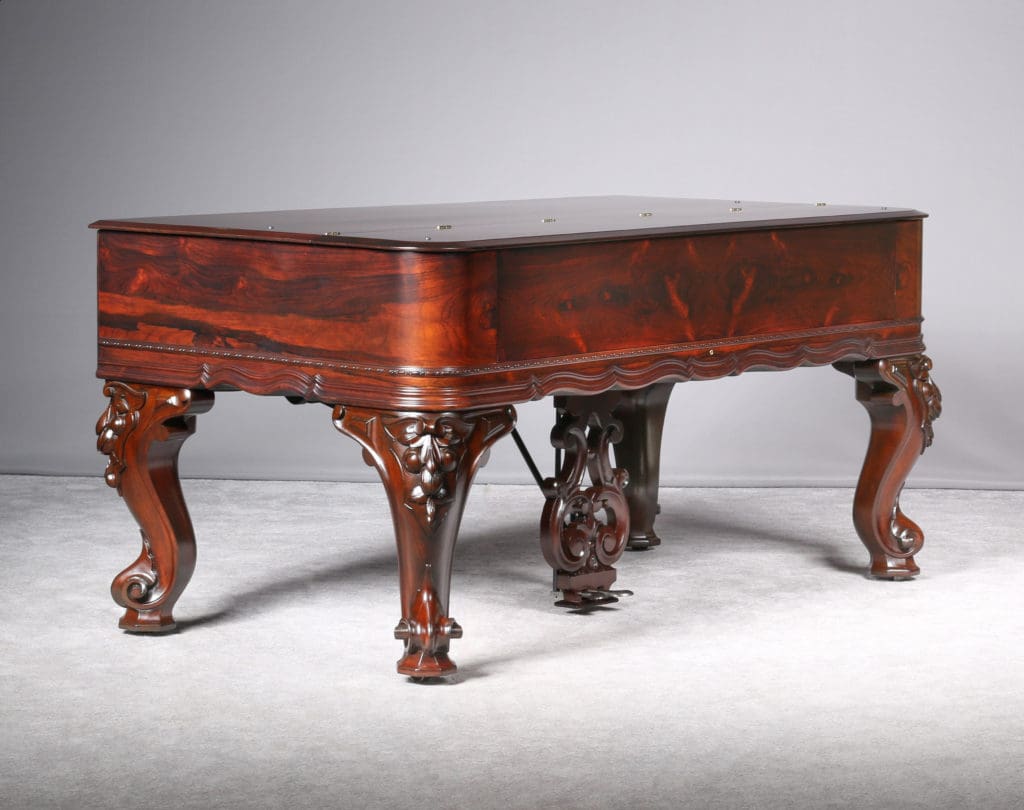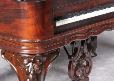 Its hard to believe this is the same piano that came to us in such terrible condition! After professional restoration, the Brazilian Rosewood is brilliant and the beautiful grain shines through with clarify. The interior mechanisms again function and sound like the did when the piano was built nearly 140 years ago!