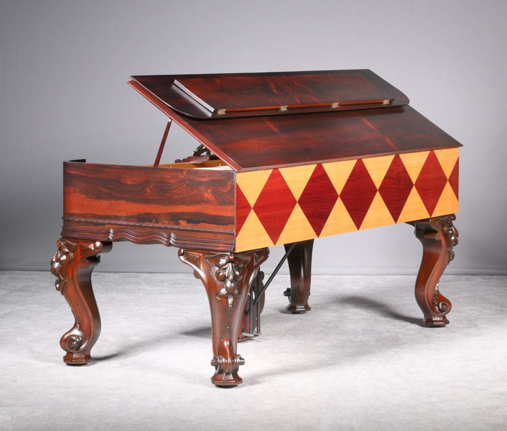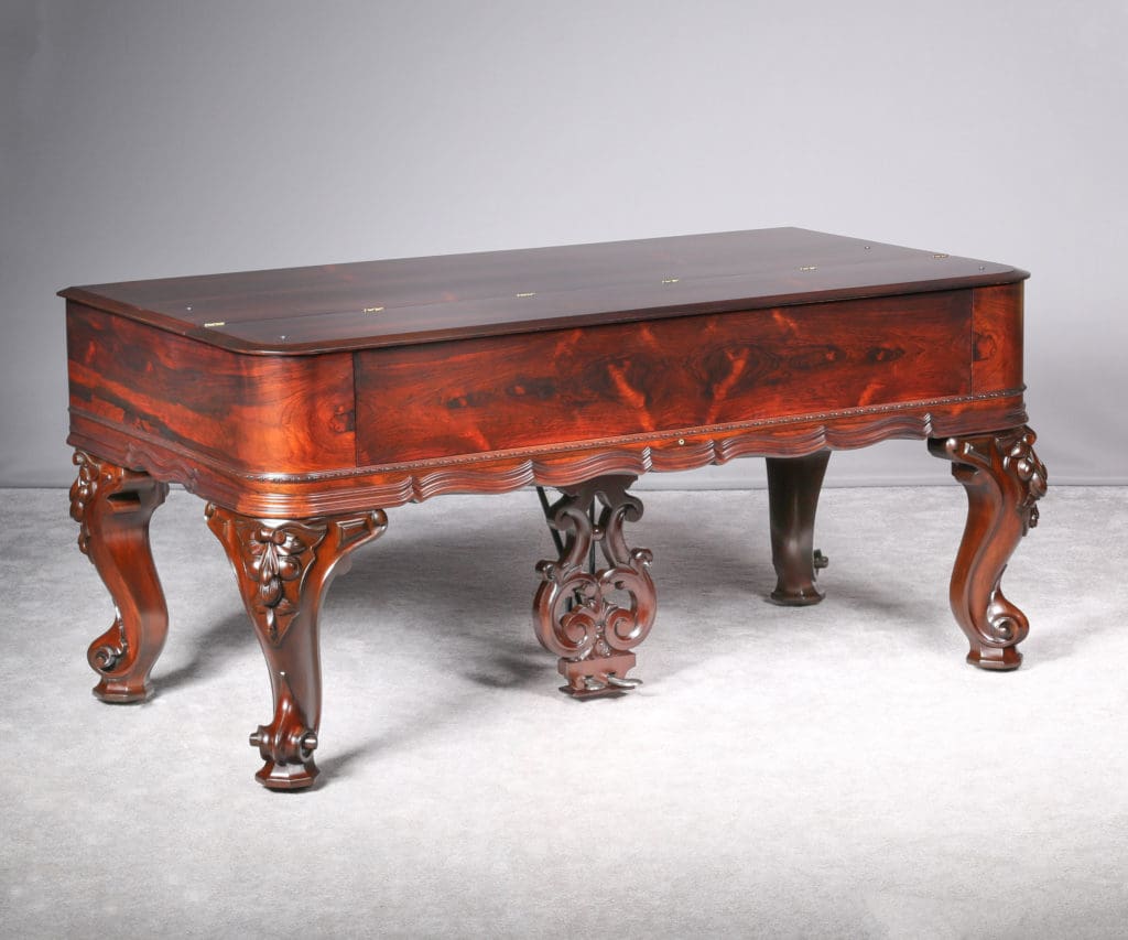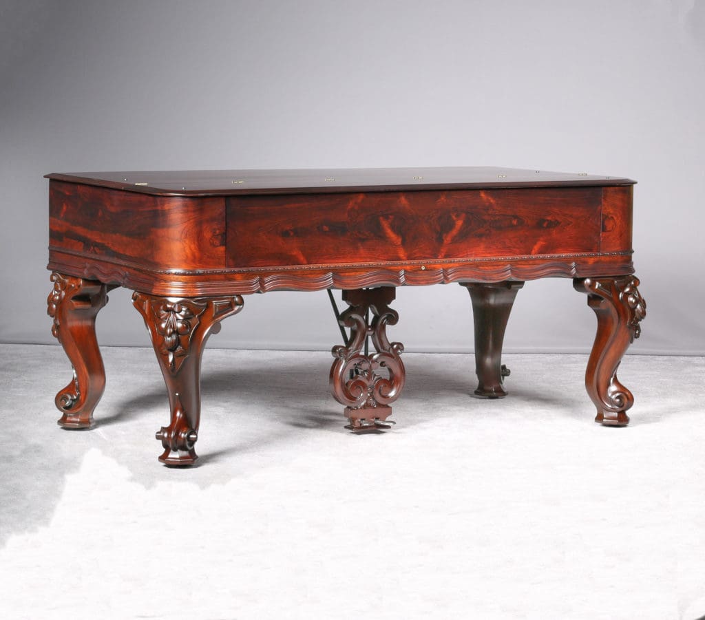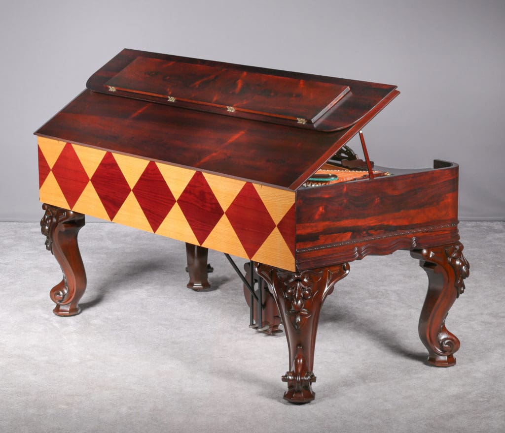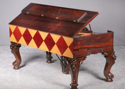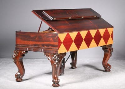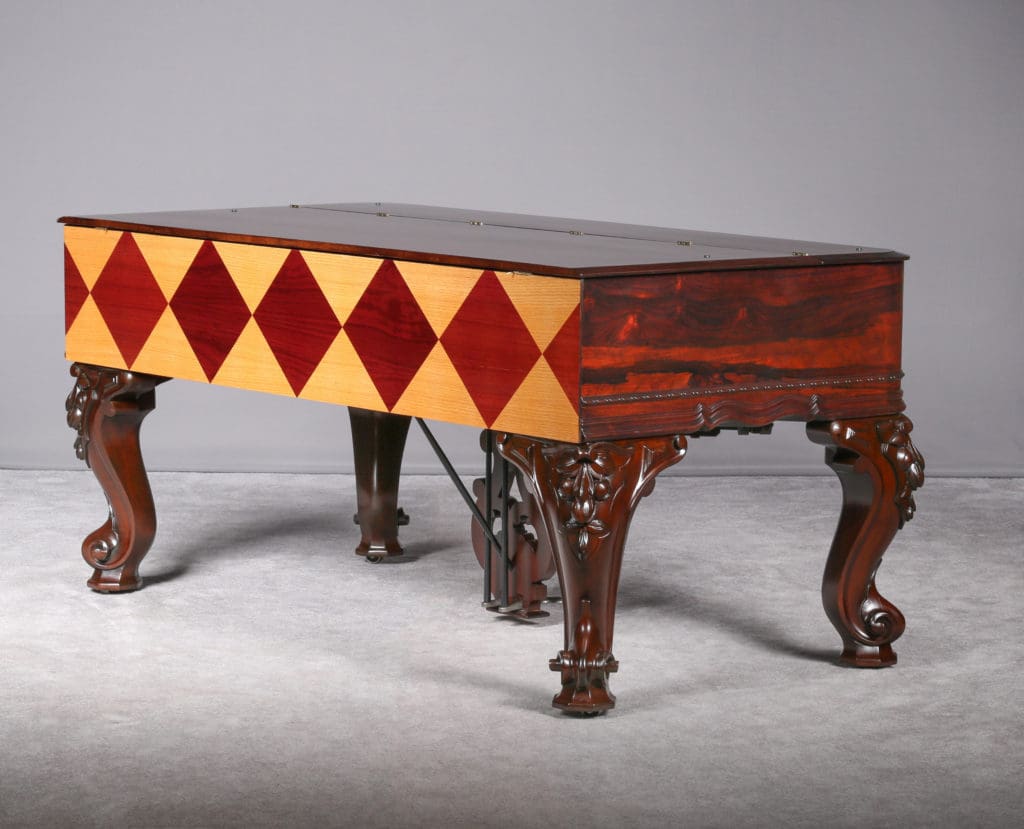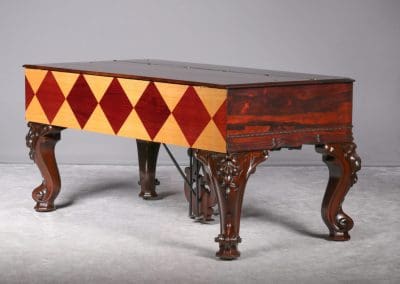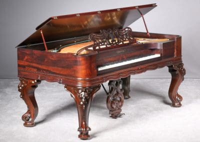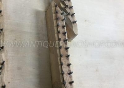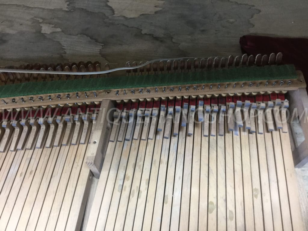 It is important to understand that the interior mechanisms of square pianos are very different from baby grand and upright pianos. Parts are not readily available for them through common piano supply companies, and many less experienced piano tuners may discourage their restoration and preservation. Here at The Antique Piano Shop, we are set up to manufacture all of the obscure parts for square grand pianos on a case-by-case basis, giving us the ability to do a complete and historically correct restoration on square pianos like this one.