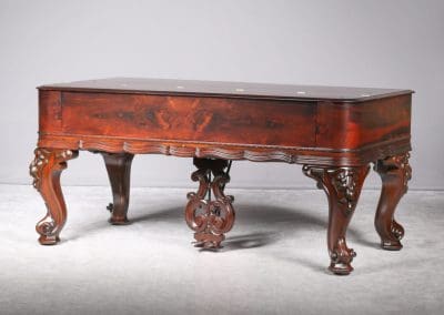 Square grand pianos like this one have a softer, more “harp-like” sound quality than modern pianos. It is fascinating to consider that when this instrument was built, there was no artificially amplified sound and the hustle and bustle of the industrial revolution was just beginning. The sound of nature or perhaps the a steam locomotive would have been the loudest noise one would have ever heard. Because their ears were accustom to the solace of very little noise, our ancestors considered the soft, “harp-like” sound quality of the square piano to be very desirable.