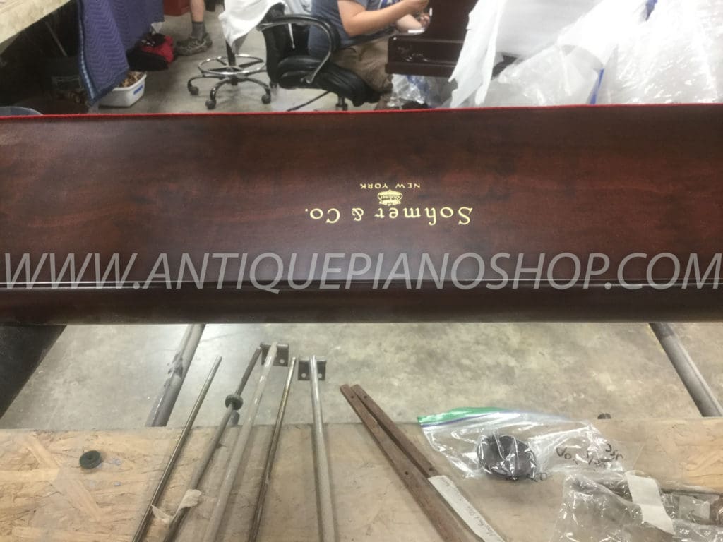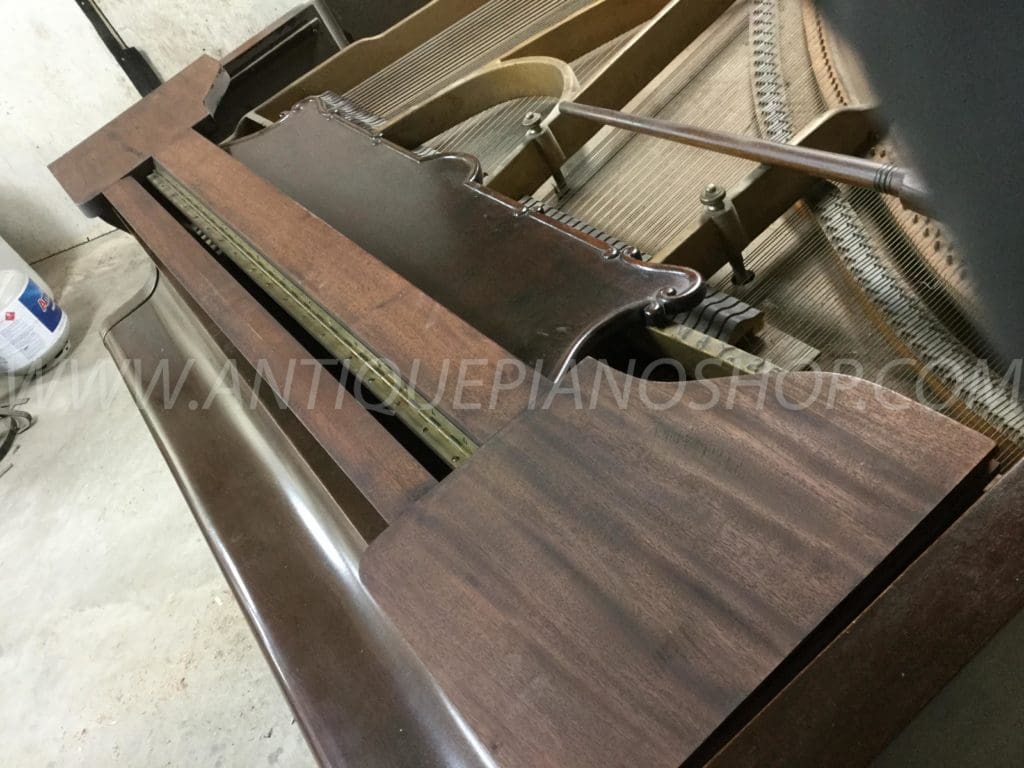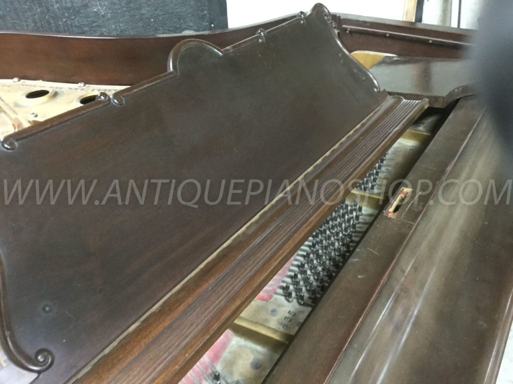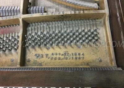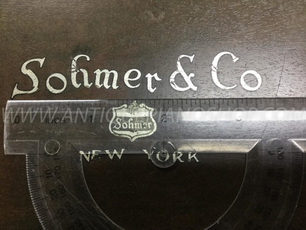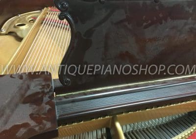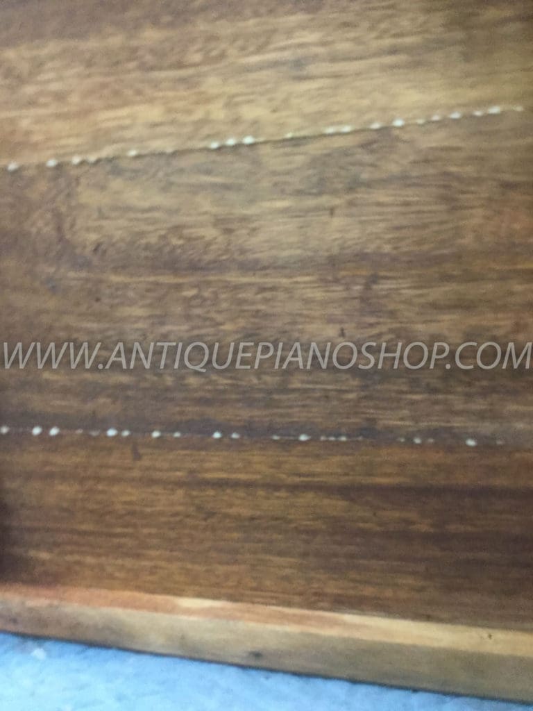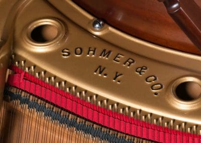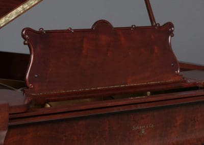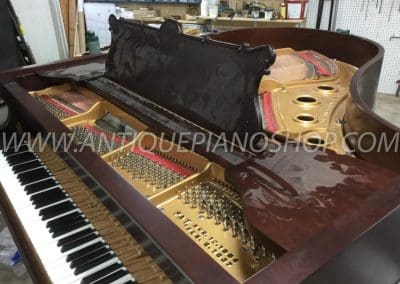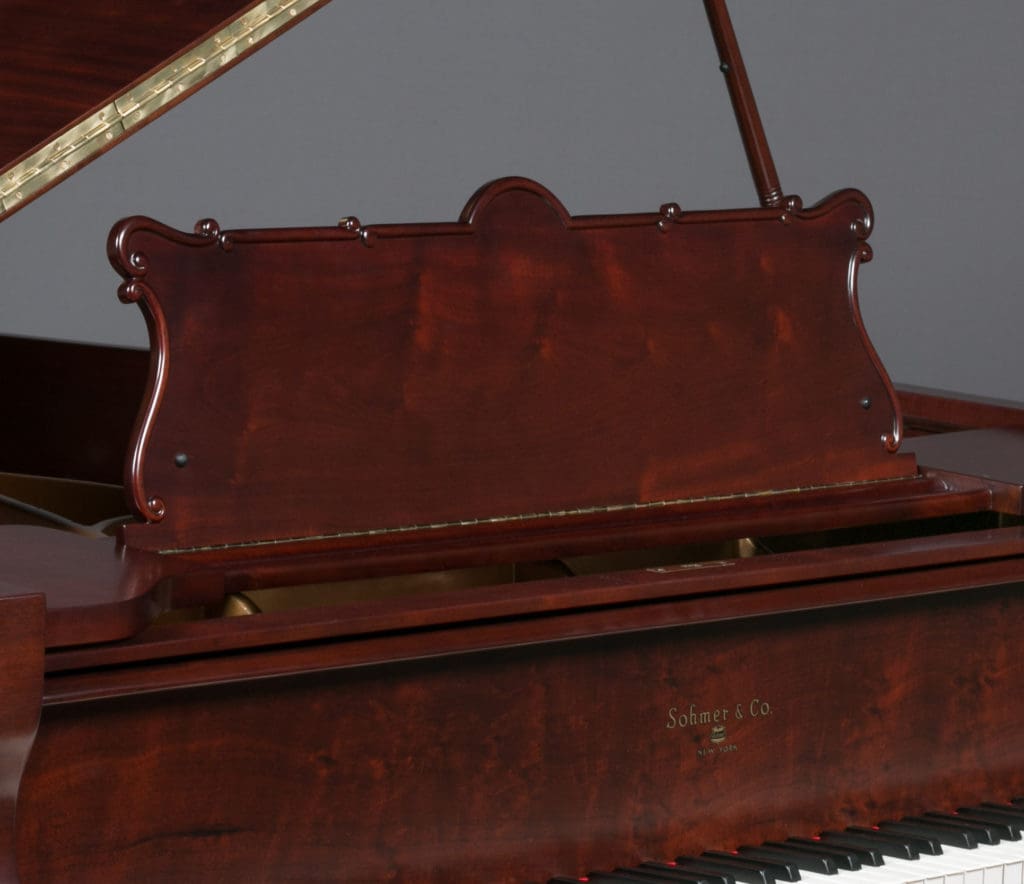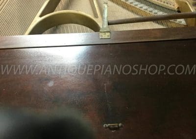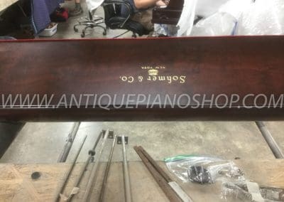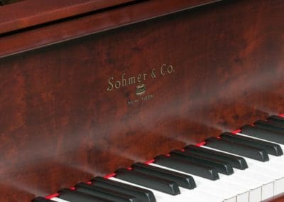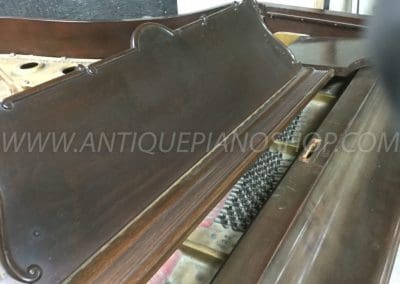 About this piano: This piano was built by the famous Sohmer Piano Company of New York at the beginning of the 20th Century. Sohmer was known for building superior-grade, expensive pianos and the firm was celebrated by pianists and musicians worldwide. At the turn of century Sohmer was known for their use of elaborate woods and had a reputation for exquisite craftsmanship. This piano was definitely no exception to the firm’s reputation. Most of our customers are shocked to learn that their antique mahogany pianos were originally finished to look like the beautiful and rich piano in the “after restoration” photo and video examples.