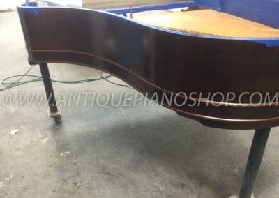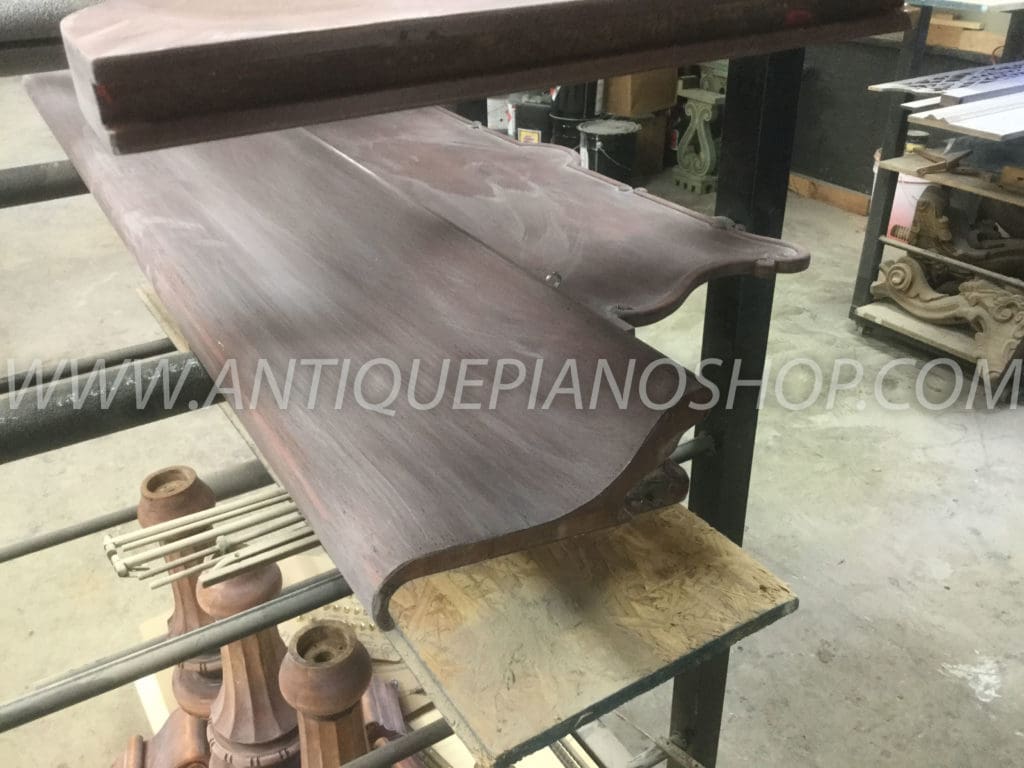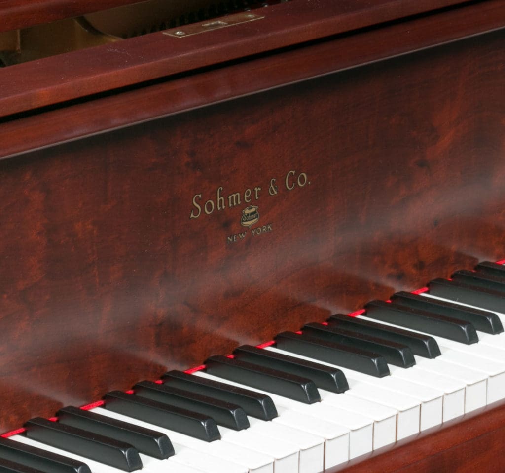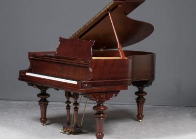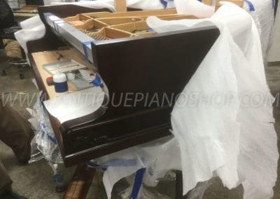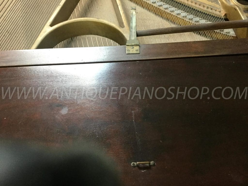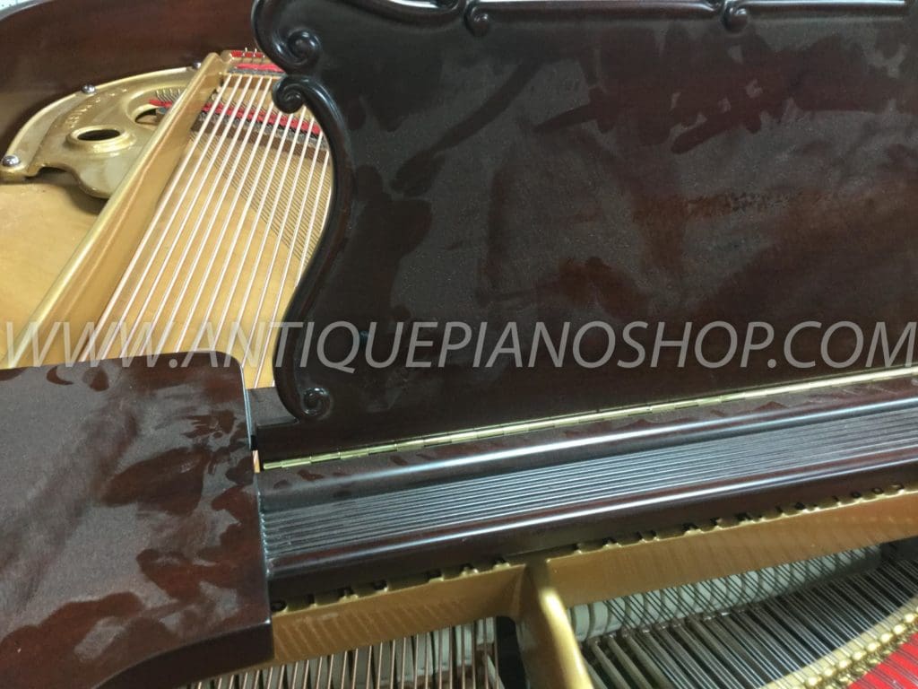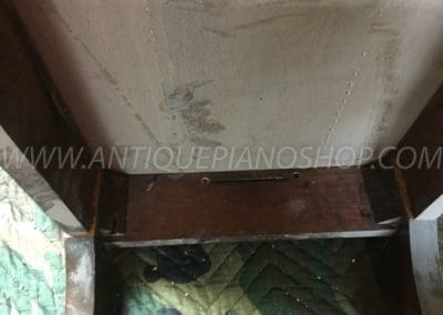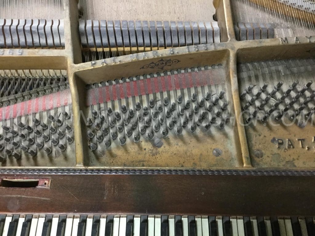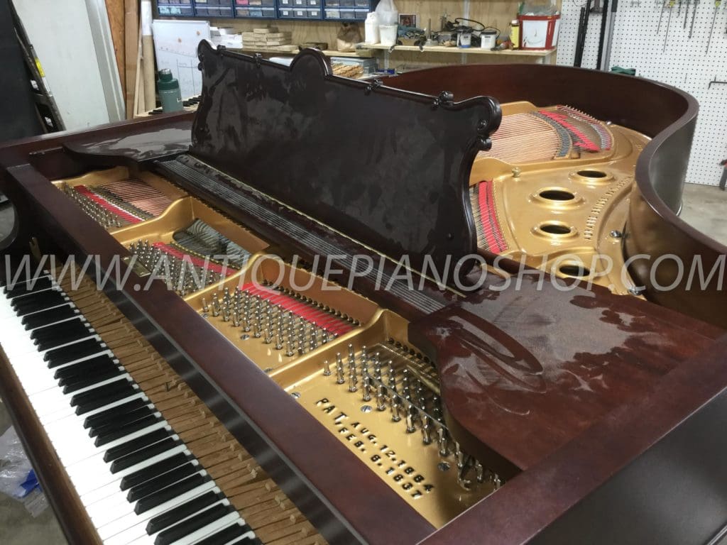 About this piano: This piano was built by the famous Sohmer Piano Company of New York at the beginning of the 20th Century. Sohmer was known for building superior-grade, expensive pianos and the firm was celebrated by pianists and musicians worldwide. At the turn of century Sohmer was known for their use of elaborate woods and had a reputation for exquisite craftsmanship. This piano was definitely no exception to the firm’s reputation. Most of our customers are shocked to learn that their antique mahogany pianos were originally finished to look like the beautiful and rich piano in the “after restoration” photo and video examples.