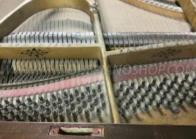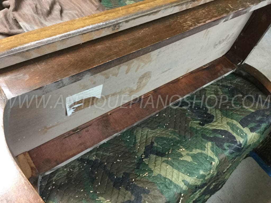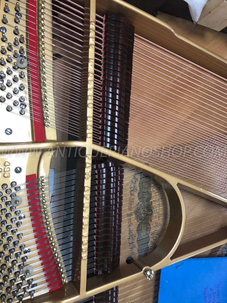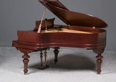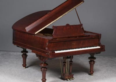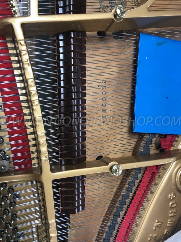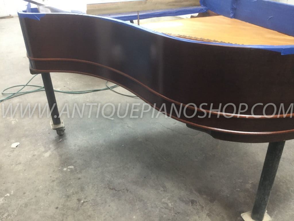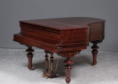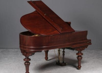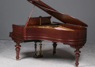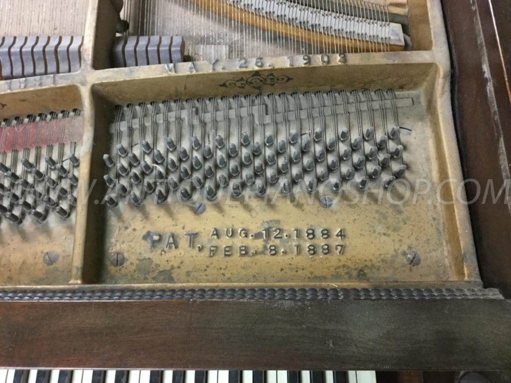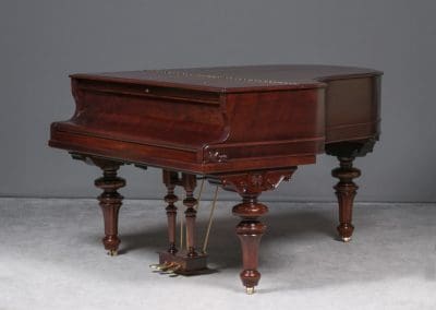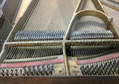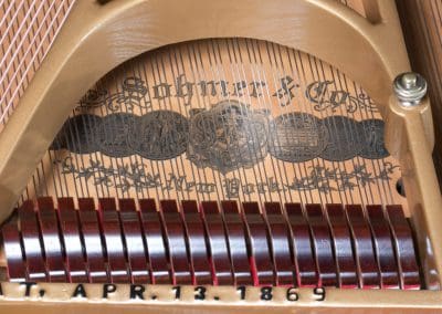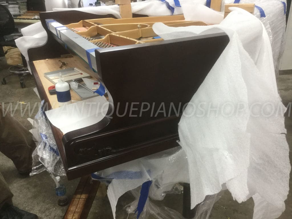 About this piano: This piano was built by the famous Sohmer Piano Company of New York at the beginning of the 20th Century. Sohmer was known for building superior-grade, expensive pianos and the firm was celebrated by pianists and musicians worldwide. At the turn of century Sohmer was known for their use of elaborate woods and had a reputation for exquisite craftsmanship. This piano was definitely no exception to the firm’s reputation. Most of our customers are shocked to learn that their antique mahogany pianos were originally finished to look like the beautiful and rich piano in the “after restoration” photo and video examples.
