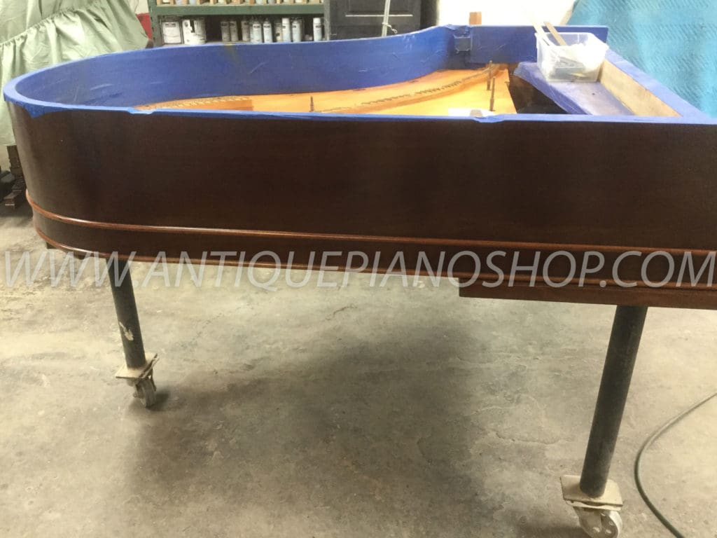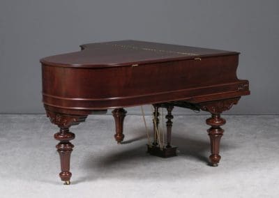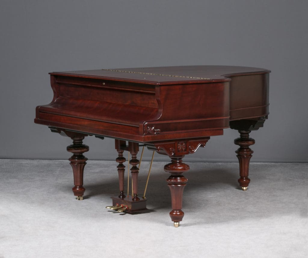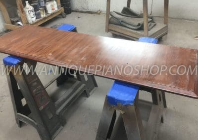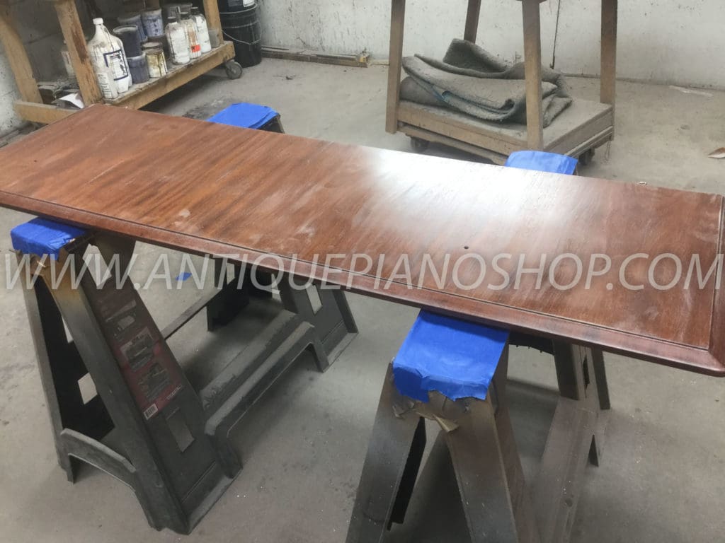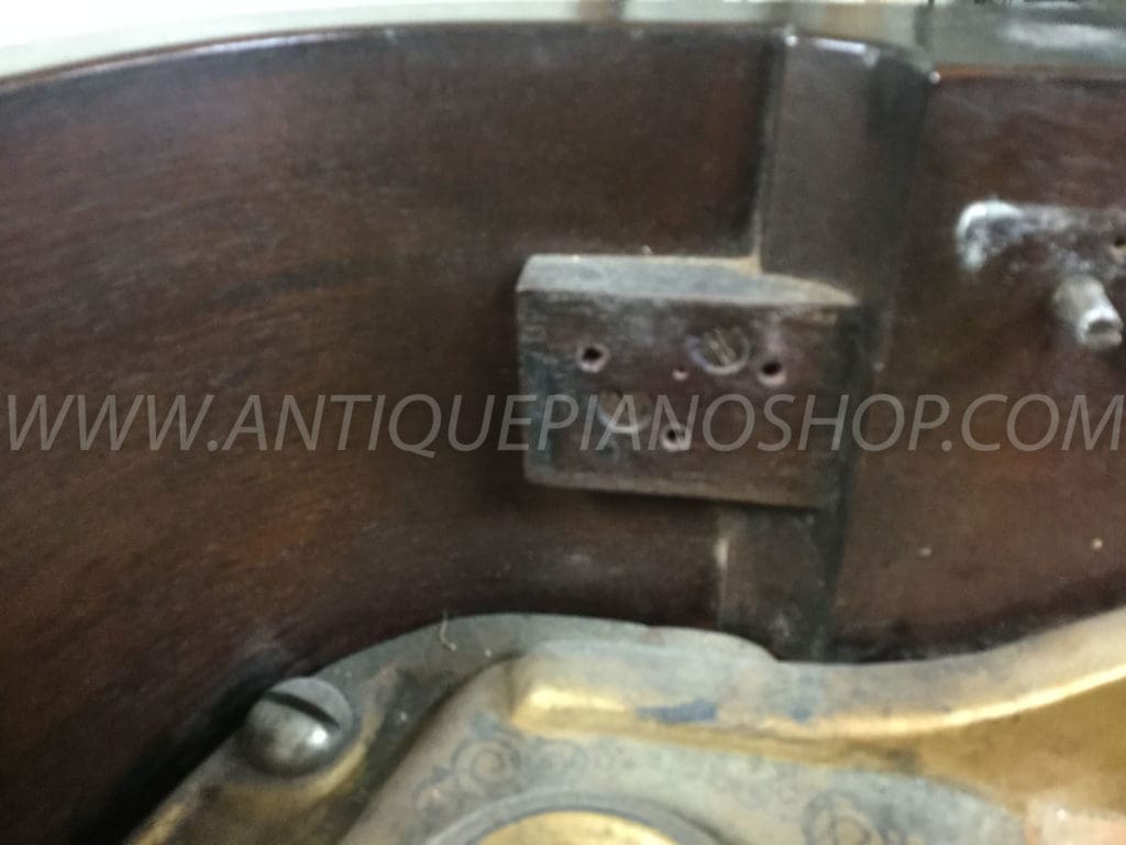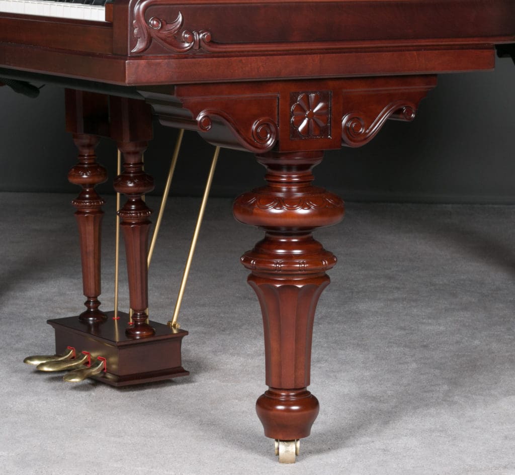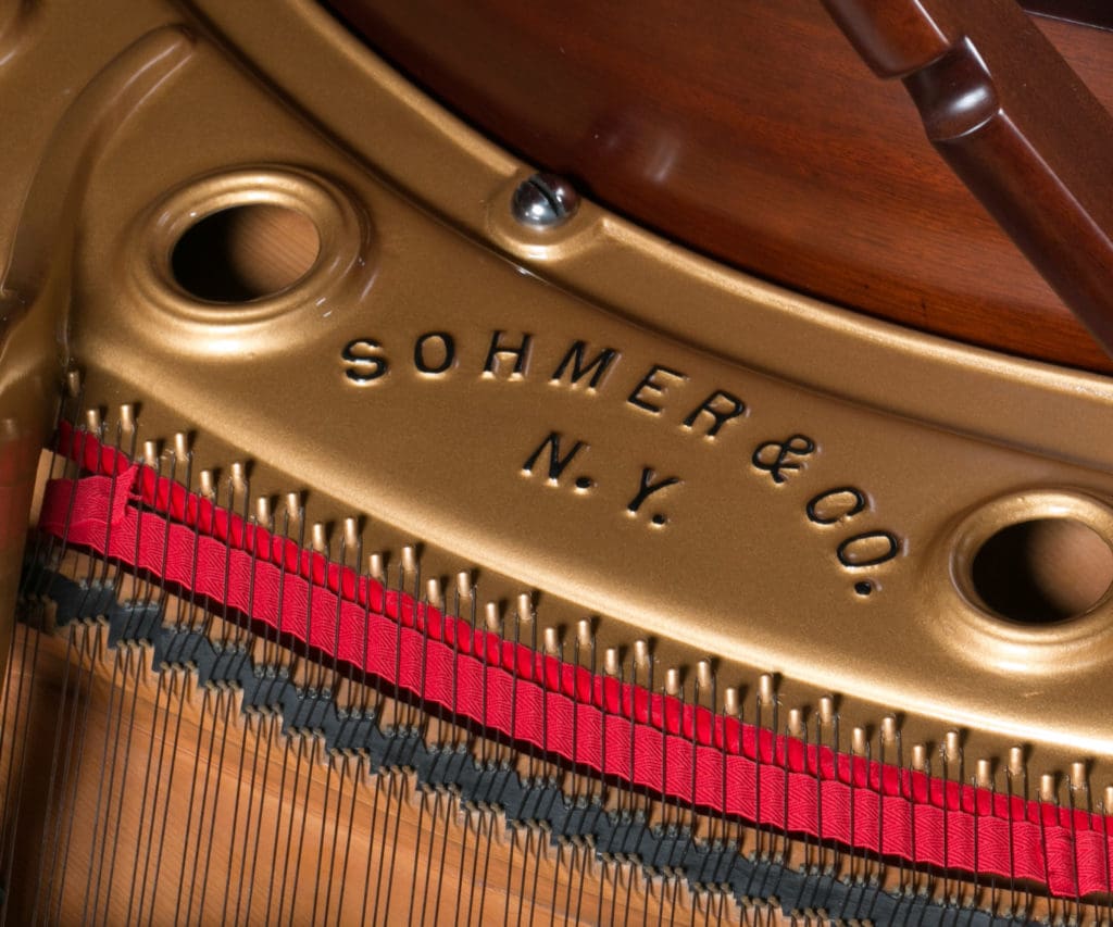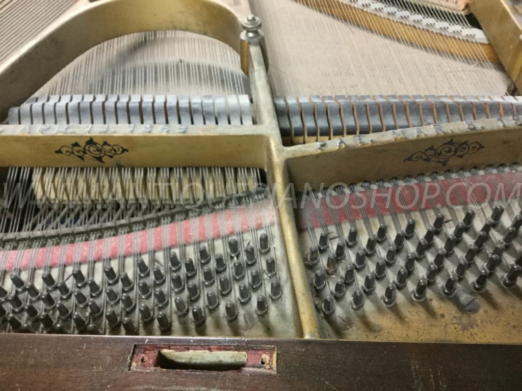 About this piano: This piano was built by the famous Sohmer Piano Company of New York at the beginning of the 20th Century. Sohmer was known for building superior-grade, expensive pianos and the firm was celebrated by pianists and musicians worldwide. At the turn of century Sohmer was known for their use of elaborate woods and had a reputation for exquisite craftsmanship. This piano was definitely no exception to the firm’s reputation. Most of our customers are shocked to learn that their antique mahogany pianos were originally finished to look like the beautiful and rich piano in the “after restoration” photo and video examples.