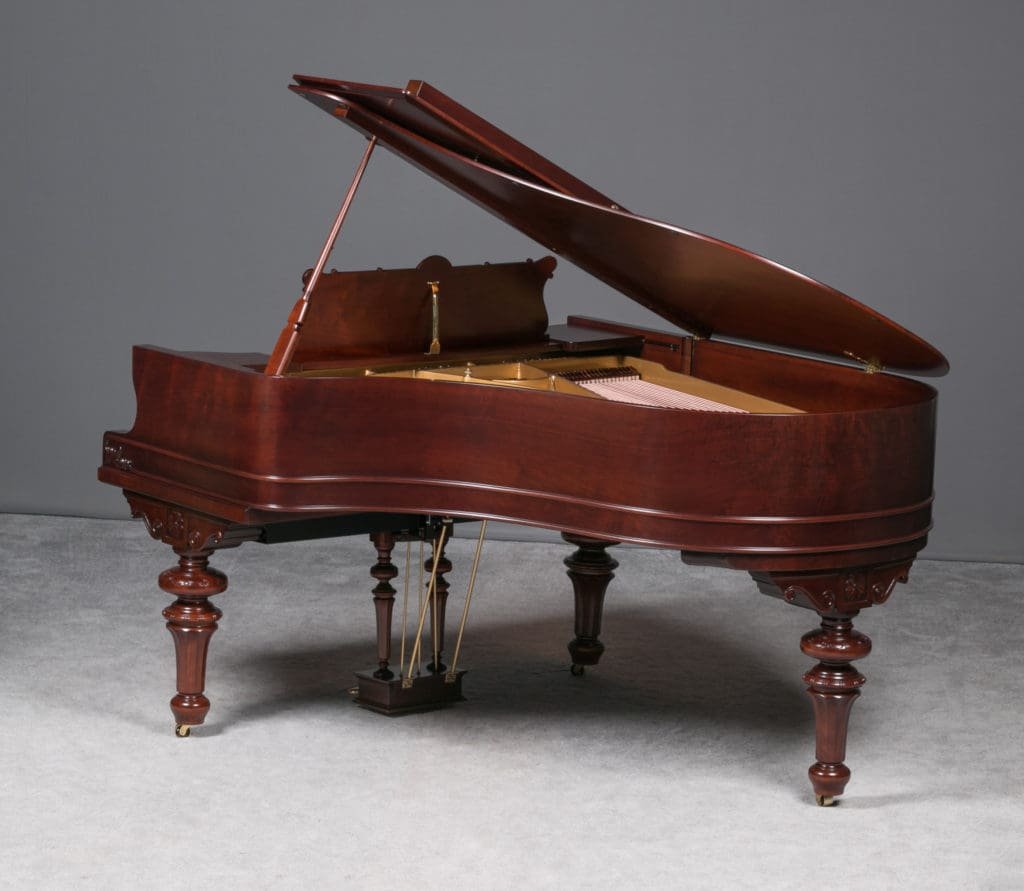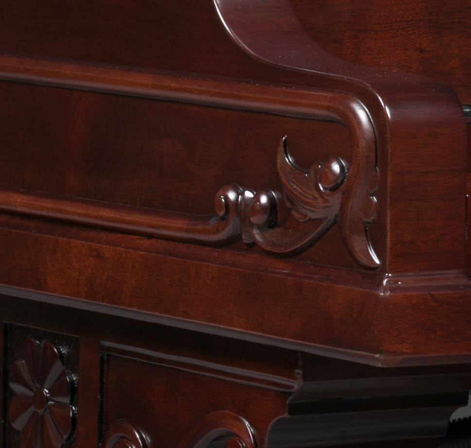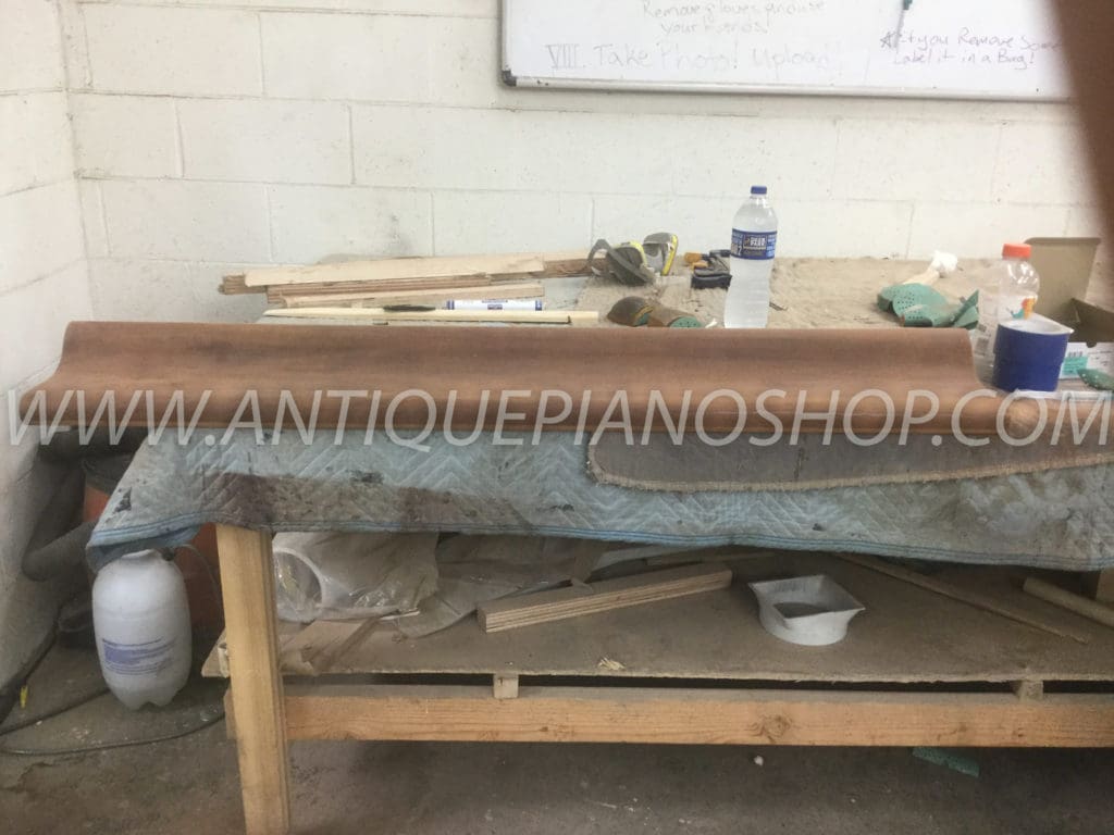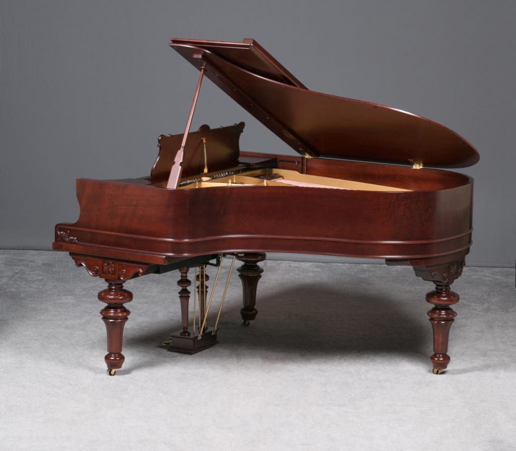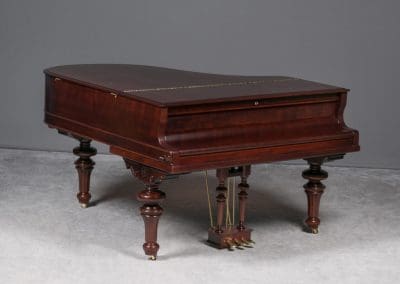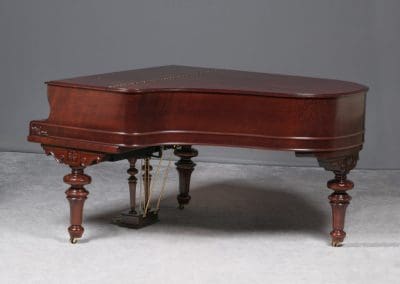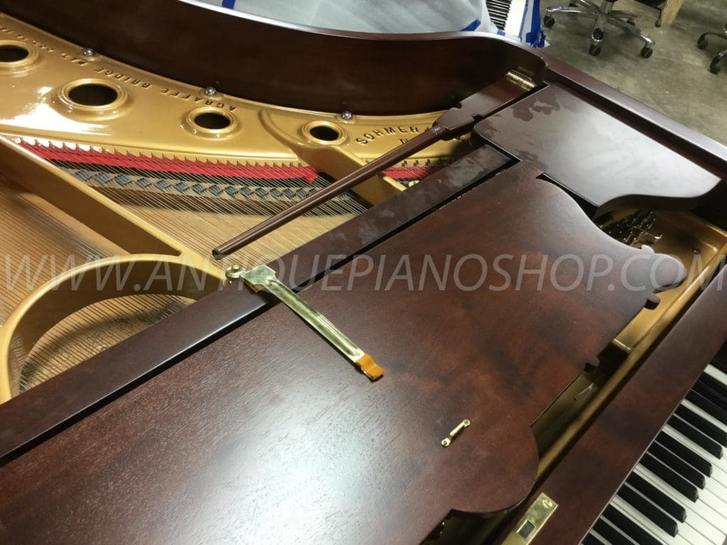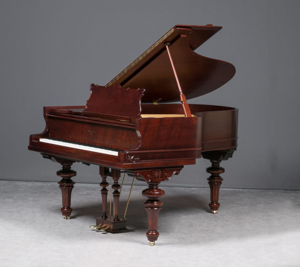 About this piano: This piano was built by the famous Sohmer Piano Company of New York at the beginning of the 20th Century. Sohmer was known for building superior-grade, expensive pianos and the firm was celebrated by pianists and musicians worldwide. At the turn of century Sohmer was known for their use of elaborate woods and had a reputation for exquisite craftsmanship. This piano was definitely no exception to the firm’s reputation. Most of our customers are shocked to learn that their antique mahogany pianos were originally finished to look like the beautiful and rich piano in the “after restoration” photo and video examples.