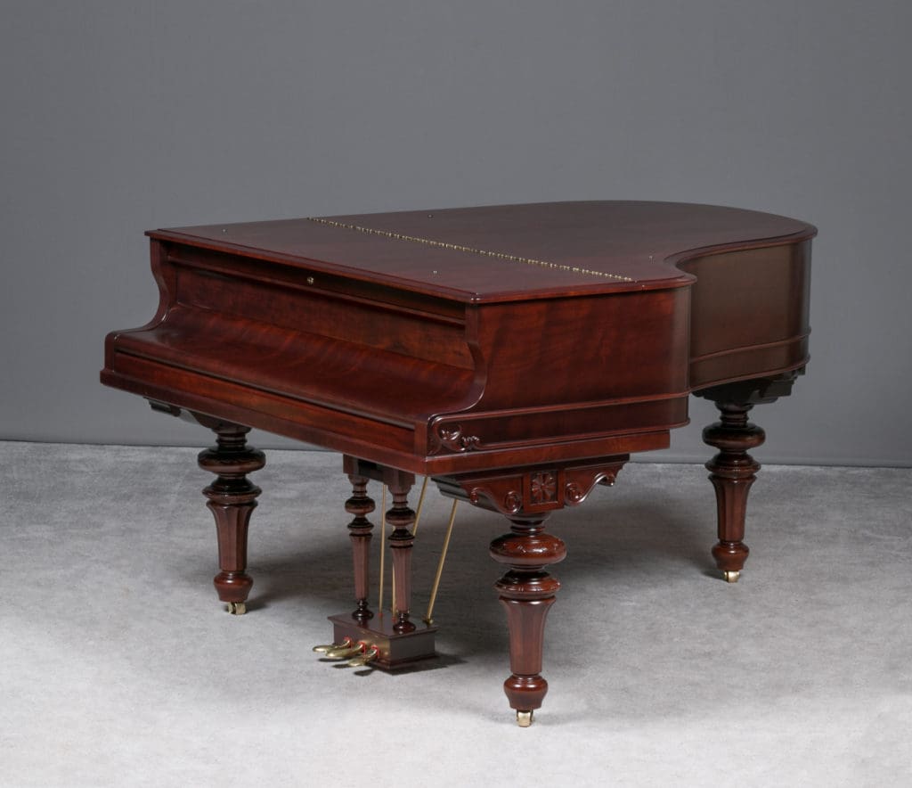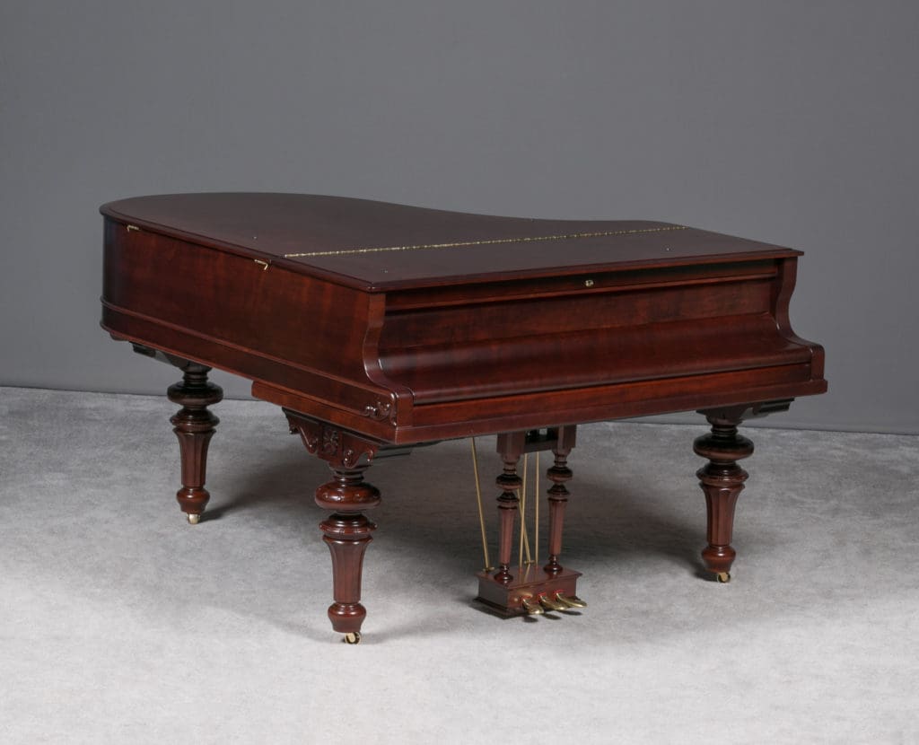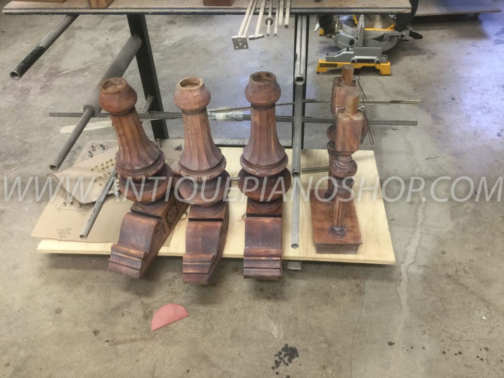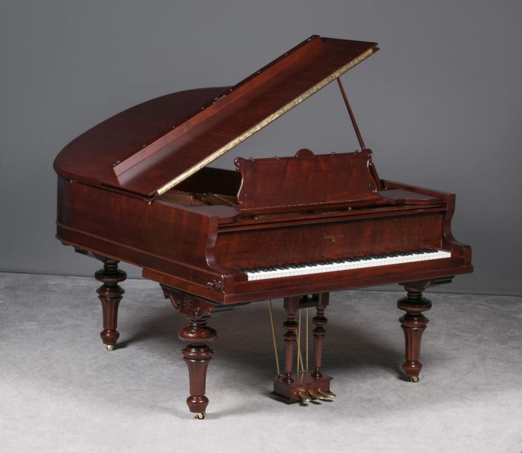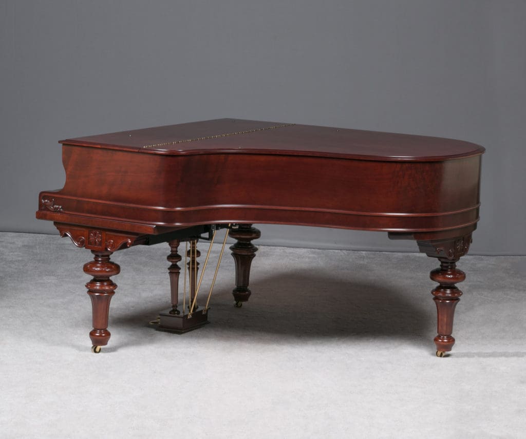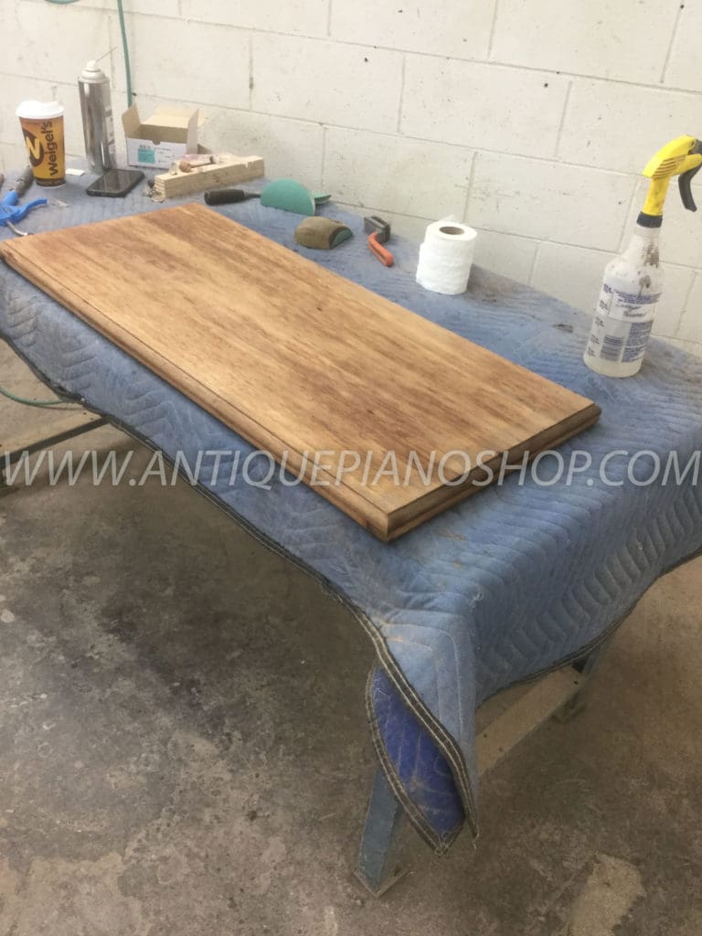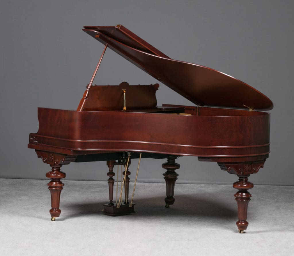 About this piano: This piano was built by the famous Sohmer Piano Company of New York at the beginning of the 20th Century. Sohmer was known for building superior-grade, expensive pianos and the firm was celebrated by pianists and musicians worldwide. At the turn of century Sohmer was known for their use of elaborate woods and had a reputation for exquisite craftsmanship. This piano was definitely no exception to the firm’s reputation. Most of our customers are shocked to learn that their antique mahogany pianos were originally finished to look like the beautiful and rich piano in the “after restoration” photo and video examples.