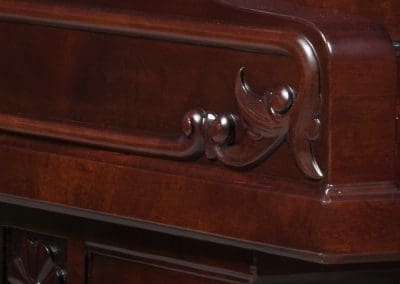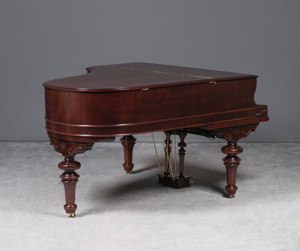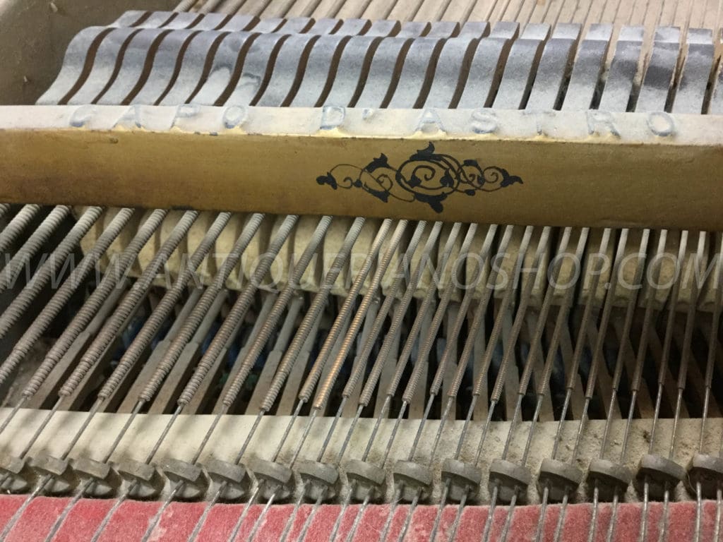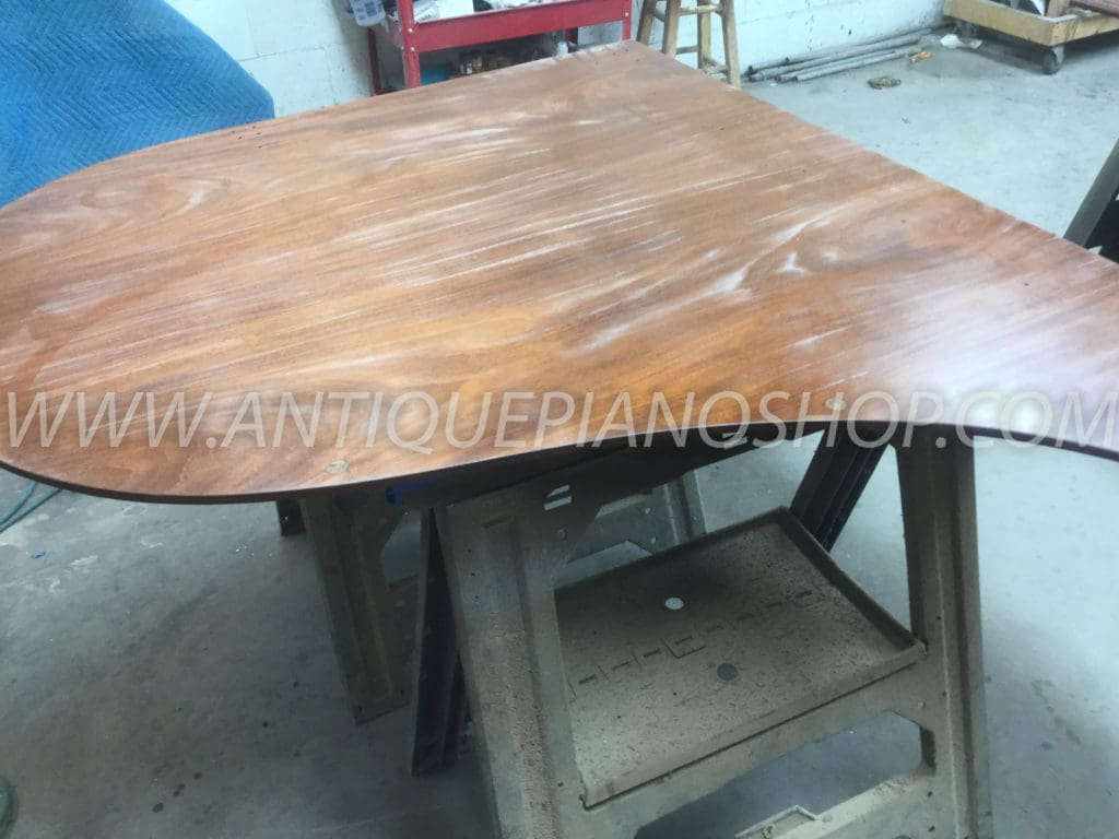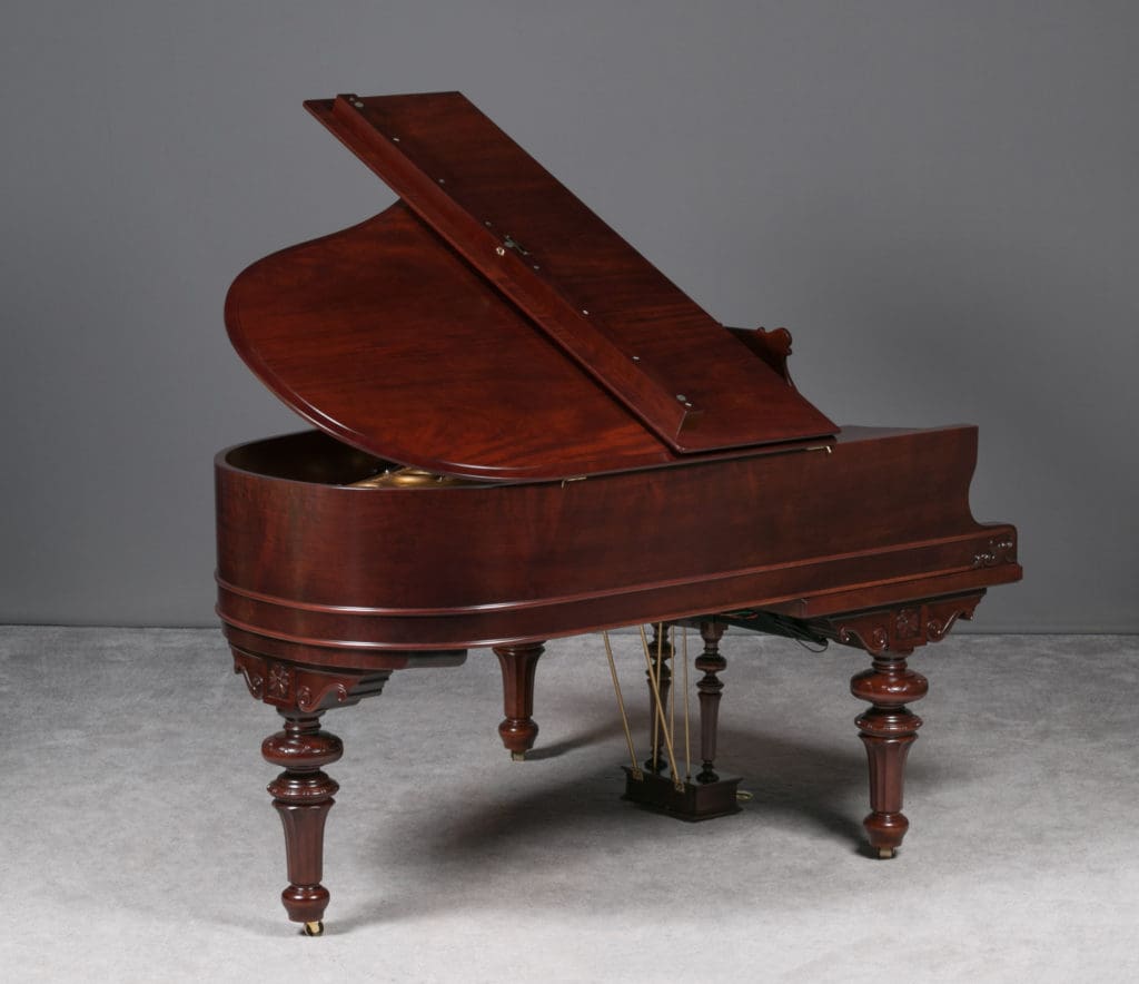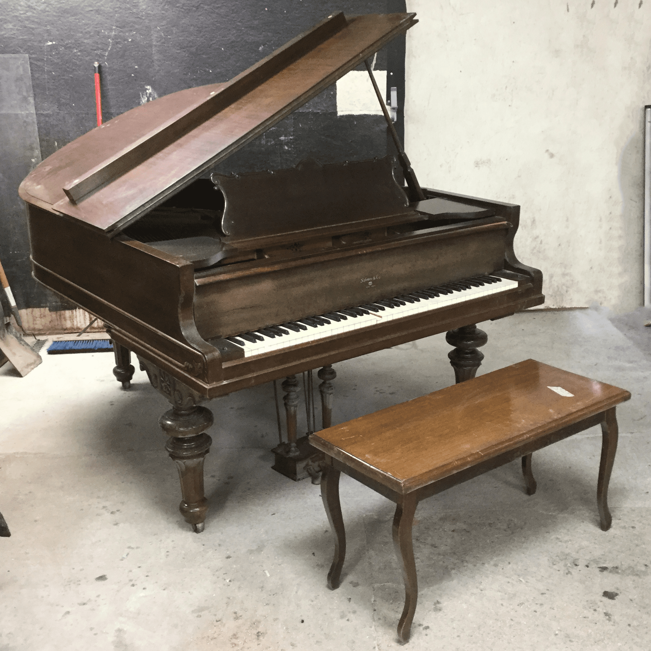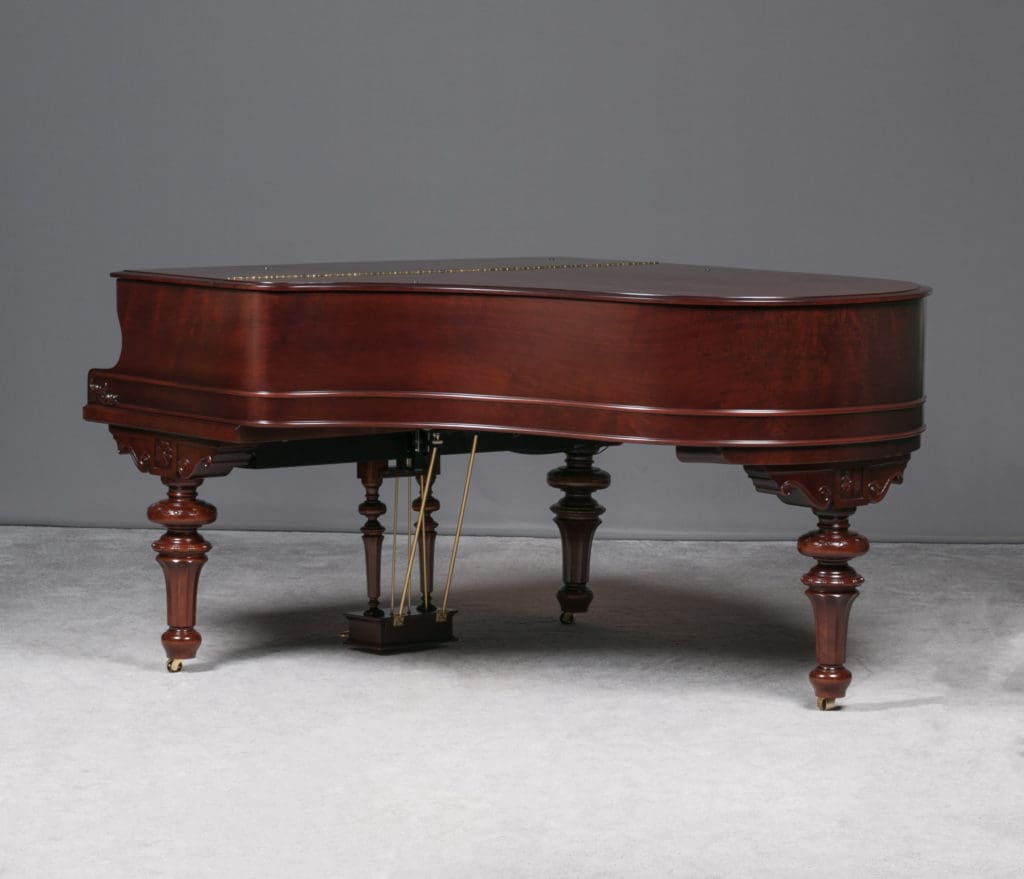 About this piano: This piano was built by the famous Sohmer Piano Company of New York at the beginning of the 20th Century. Sohmer was known for building superior-grade, expensive pianos and the firm was celebrated by pianists and musicians worldwide. At the turn of century Sohmer was known for their use of elaborate woods and had a reputation for exquisite craftsmanship. This piano was definitely no exception to the firm’s reputation. Most of our customers are shocked to learn that their antique mahogany pianos were originally finished to look like the beautiful and rich piano in the “after restoration” photo and video examples.
