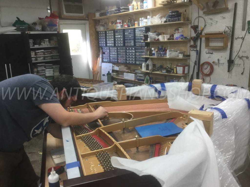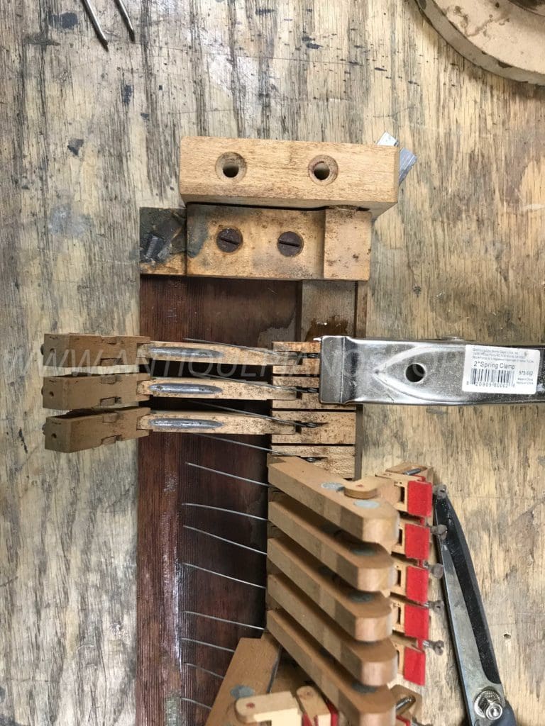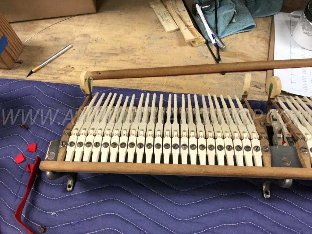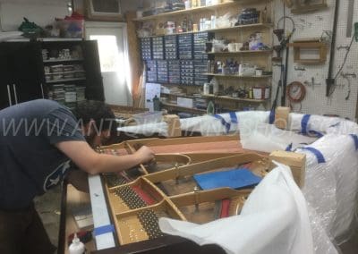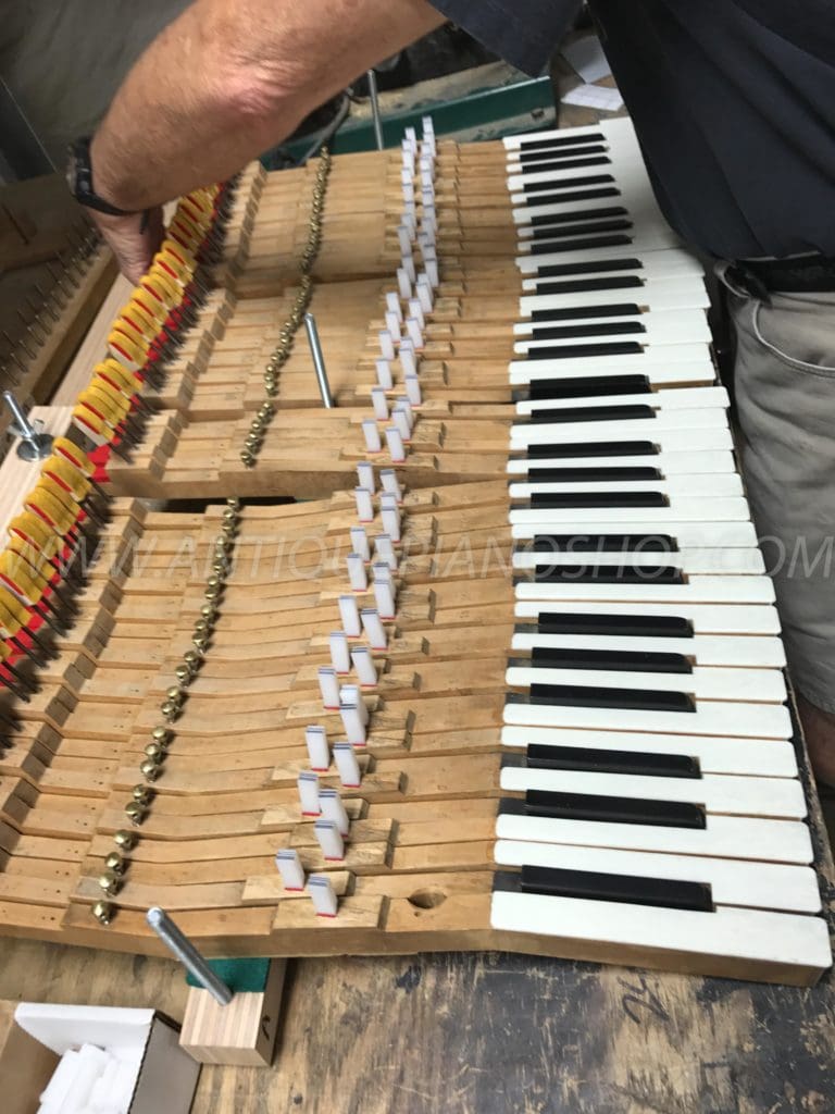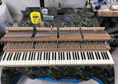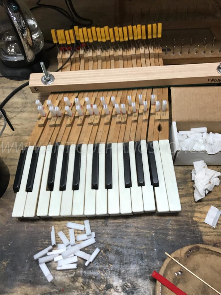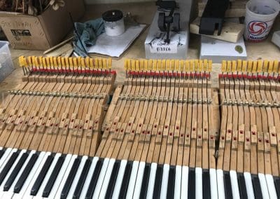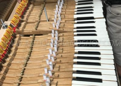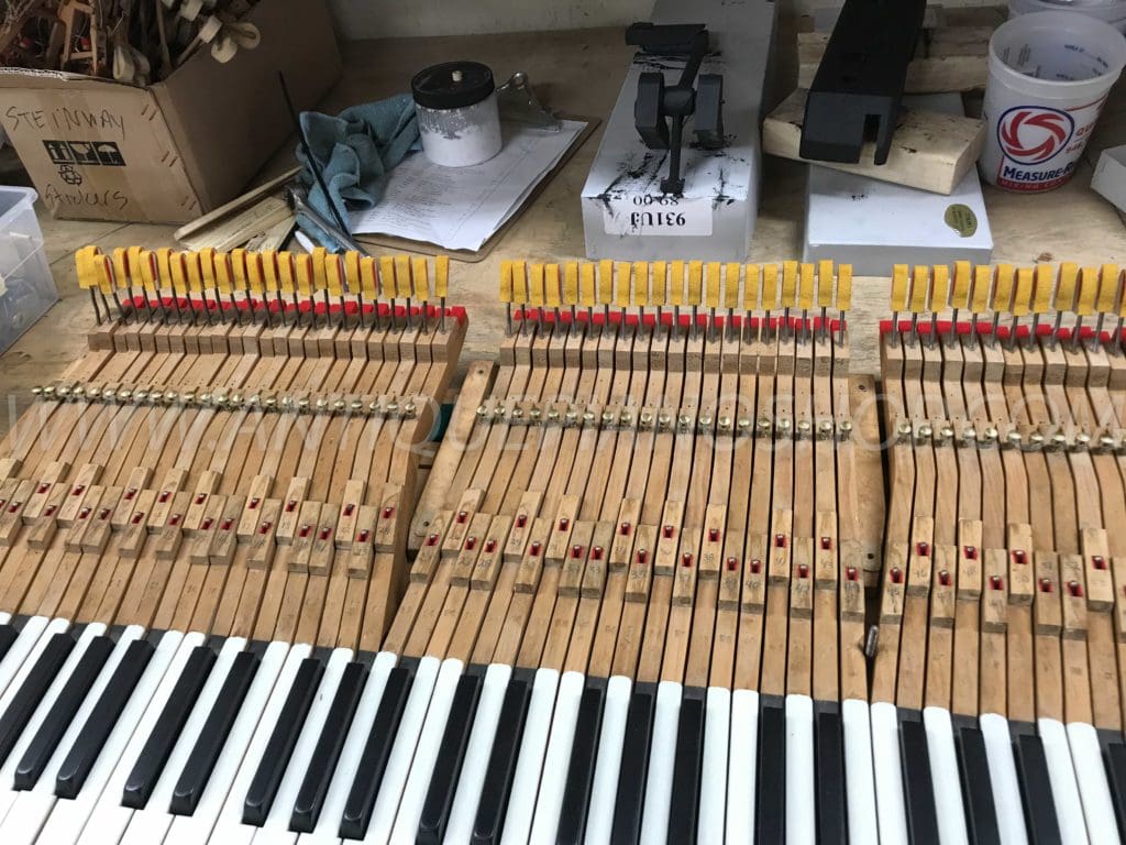 After the action is fully restored it is installed and regulated to the strings by a senior technician.