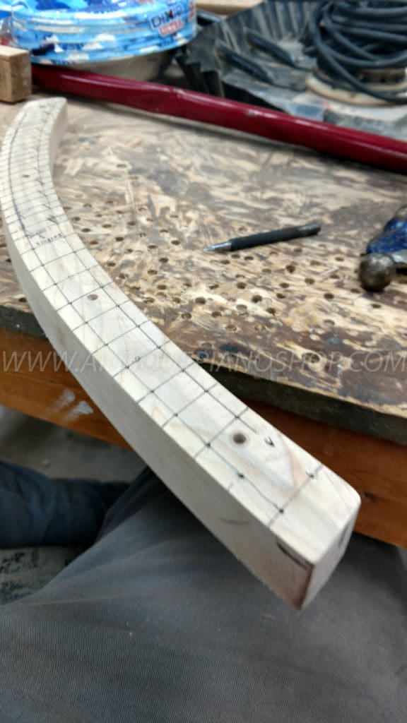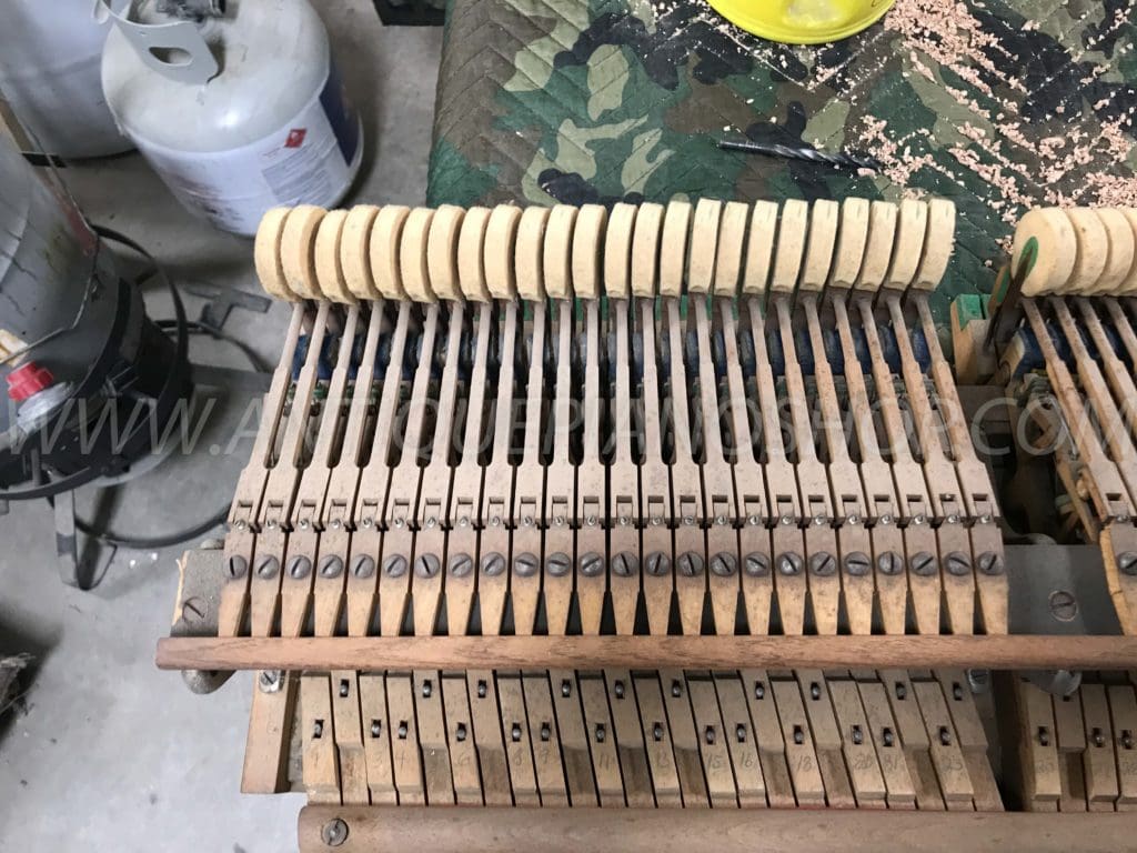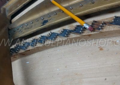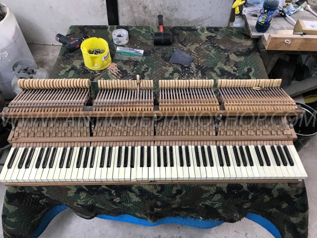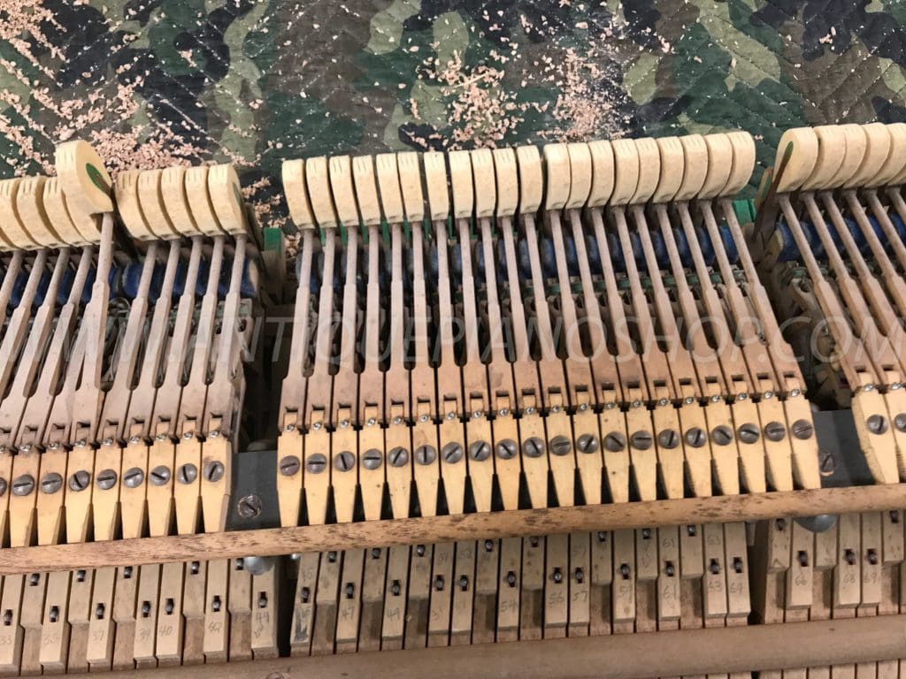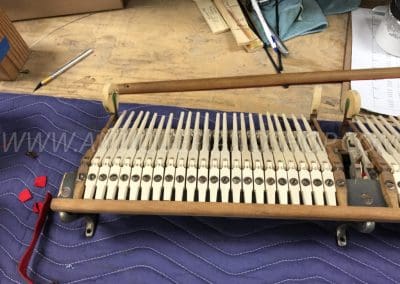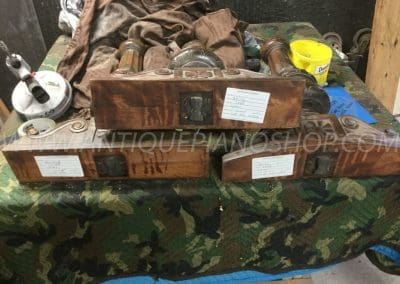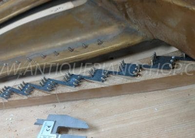 Before the piano is disassembled, careful notes are taken on the original placement of the action while it is in the piano. Every part of the piano is carefully photographed and cataloged as the piano is disassembled. All unique features of the action’s geometry are noted before work begins to allow for accurate and historically correct rebuilding.