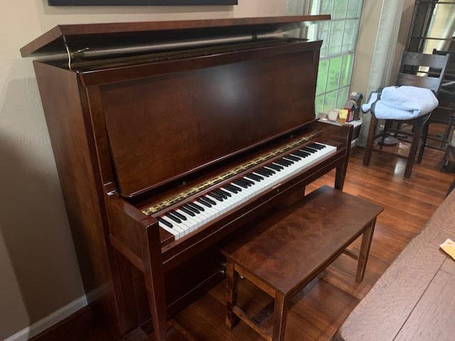 A Piano my wife had bought from Good Will for $ 108 dollars when my son was in the 3 rd grade- He is now 27! The Piano was never in tune – missing petals- missing keys – But somehow he learned to play it and it was on the brink of just being tossed to the side.