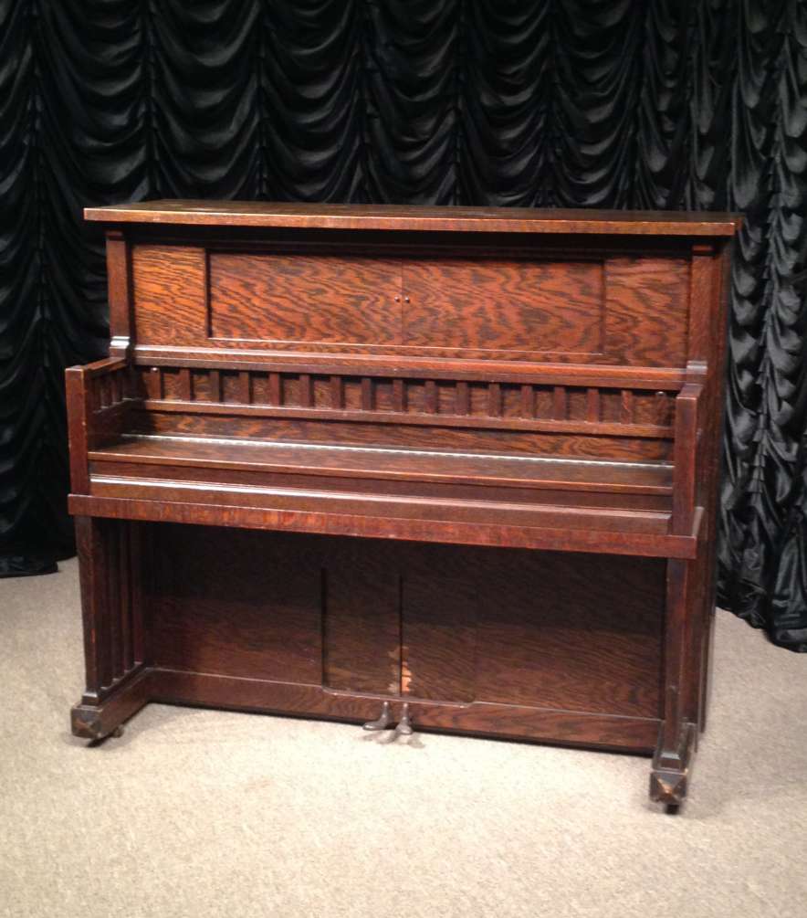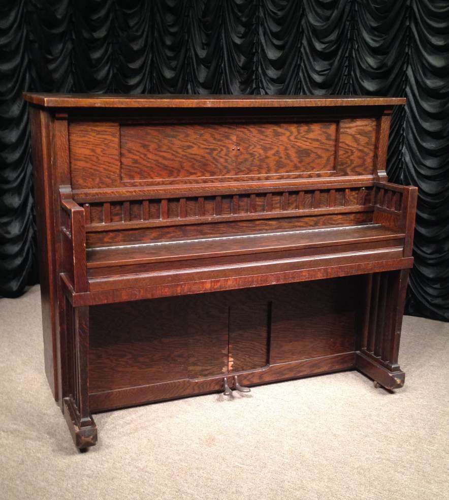 Very Rare Library Mission Style Player Piano In Straight Cut Grain Oak Wood